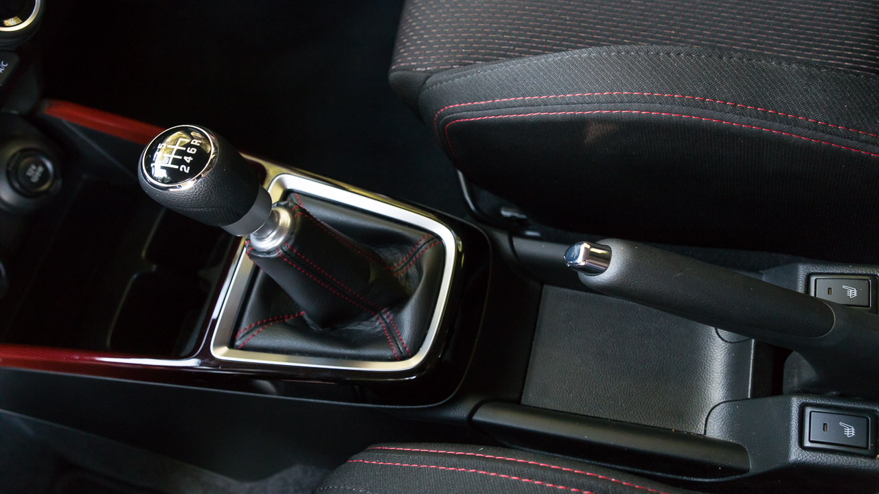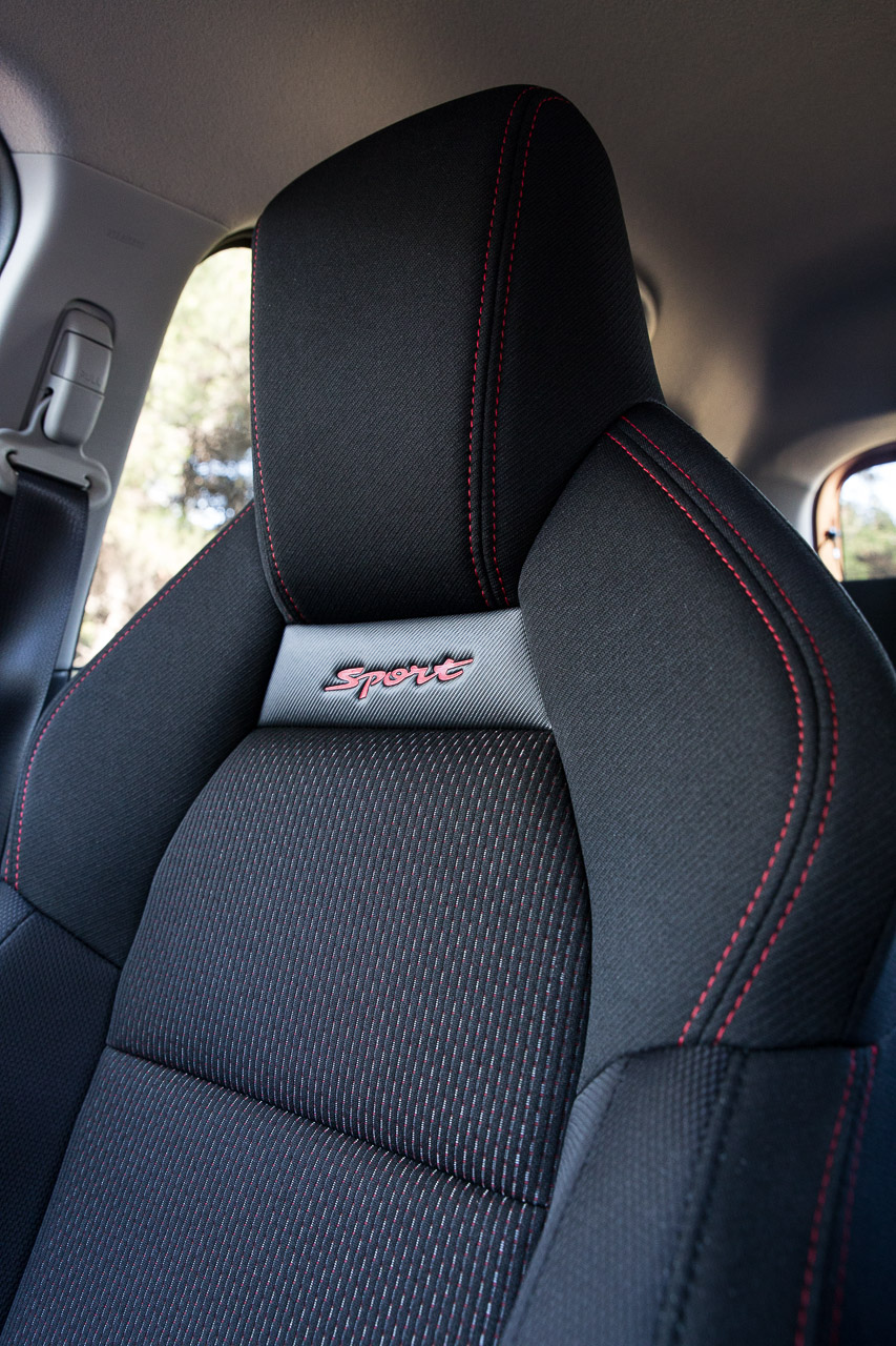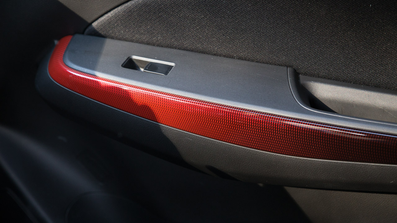 Η σπορ εικόνα συνεχίζεται και στο εσωτερικό του Swift Sport Hybrid με τη Suzuki να έχει προχωρήσει σε όλες τις απαραίτητες “πινελιές” ώστε η εικόνα της καμπίνας να αντιστοιχεί στην εξωτερική και να δίνει στον οδηγό όντως την αίσθηση πως βρίσκεται σε ένα ξεχωριστό Swift. Με το άνοιγμα της πόρτας τα σπορ καθίσματα με τις κόκκινες ραφές είναι τα πρώτα που υποδέχονται την ματιά του παρατηρητή. Προσφέρουν καλή πλευρική στήριξη που αναλογεί στην εικόνα τους, αν και κάποιοι ίσως βρουν τη βάση λίγο πιο ρηχή από το ιδανικό. Ακολουθεί το τριάκτινο τιμόνι με τη δερμάτινη επένδυση με τις κόκκινες ραφές να δίνουν και εδώ το “παρών” όπως και στην επένδυση του επιλογέα αλλά και του χειρόφρενου. Τα διακοσμητικά χρωματιστά φιλέτα σε ταμπλό και πόρτες δίνουν λίγο περισσότερο χρώμα σε μια κατά τα άλλα σκουρόχρωμη καμπίνα που χαρακτηρίζεται από τα σκληρά πλαστικά που έχουν χρησιμοποιηθεί για την κατασκευή της αλλά και τα πολύ υψηλά επίπεδα συναρμογής και συναρμολόγησης.