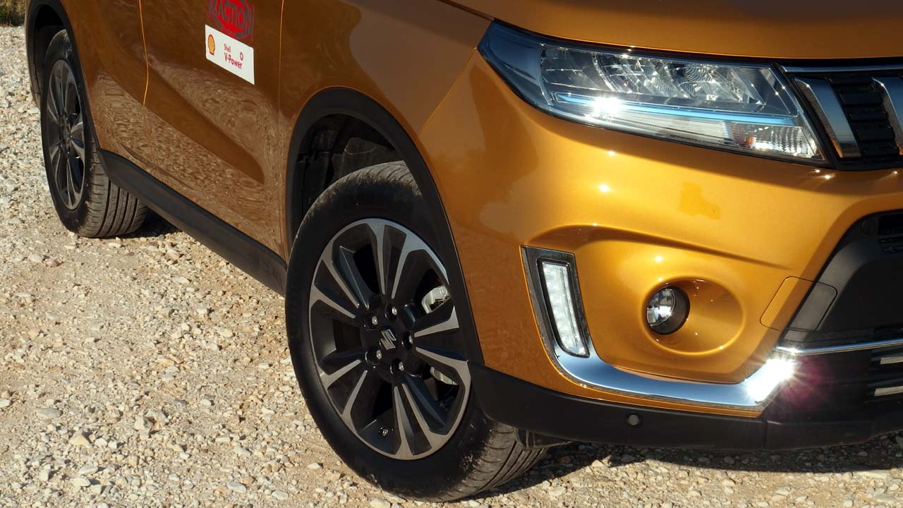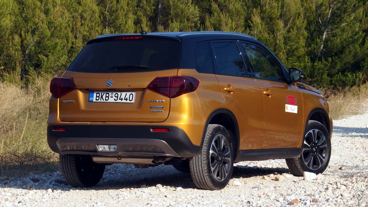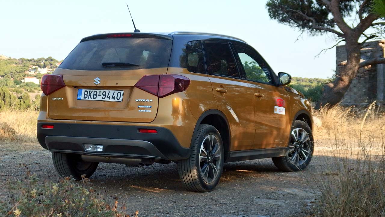 Το ανανεωμένο Suzuki Vitara το οδηγήσαμε πριν από περίπου έναν χρόνο και από τότε δεν έχει αλλάξει. Όπως και τότε, έτσι και τώρα, το μοντέλο της δοκιμής μας έχει διατηρήσει τα χαρακτηριστικά που το έκαναν γνωστό και εφοδιάζεται με τον ανασχεδιασμένο προφυλακτήρα, τη νέα μάσκα εμπρός και τους νέους LED προβολείς. Αλλαγές υπάρχουν και στο πίσω μέρος, οι οποίες πάντως είναι πιο δυσδιάκριτες, καθώς εντοπίζονται στα νέα κρύσταλλα των φώτων και στον ελαφρώς ανασχεδιασμένο προφυλακτήρα. Φυσικά η διχρωμία με την μαύρη οροφή δεν περνά απαρατήρητη, ενώ το ίδιο ισχύει και για τις χρωμιωμένες μπάρες οροφής. Το μήκος του ανανεωμένου Suzuki Vitara είναι στα 4.175 χλστ. το πλάτος στα 1.775 χλστ. και το ύψος στα 1.610 χλστ. Το μεταξόνιό του έχει μήκος 2.500 χλστ. ενώ η απόστασή του από το έδαφος είναι στα 185 χλστ.