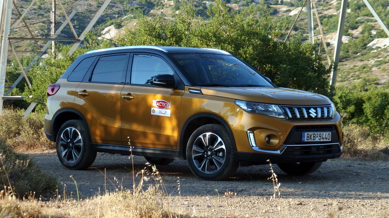 Όσοι έχετε στο μυαλό σας το Vitara ως off road animal (περιλαμβάνω και τον εαυτό μου σε αυτούς) να το ξεχάσετε. Το ιαπωνική SUV στην τελευταία του, τέταρτη γενιά έγινε πιο… ασφάλτινο από ότι ήταν στο παρελθόν, όμως αυτό δεν σημαίνει πως δεν τα πάει καλά εκτός δρόμου. Ίσα ίσα, που είναι αρκετά καλύτερο από το μέσο όρο της κατηγορίας σε εκτός δρόμου ικανότητες. Το σύστημα τετρακίνησης AllGrip ελέγχεται από τον οδηγό μέσω ενός περιστροφικού διακόπτη, που δίνει τη δυνατότητα επιλογής ανάμεσα στα προγράμματα Auto, Sport, Snow και Lock. Στο αυτόματο η κίνηση μεταδίδεται στον εμπρός άξονα και μόλις υπάρξει απώλεια πρόσφυσης τότε ποσοστό της ροπής μεταφέρεται και στον πίσω. Στο πρόγραμμα Lock η ροπή μεταδίδεται ισόποσα και στους δύο άξονες, ενώ στα άλλα δύο προγράμματα προσαρμόζεται αναλόγως συνθηκών προκειμένου να προσφέρει τη βέλτιστη συμπεριφορά σε χιόνι ή γρήγορη οδήγηση. Αν πάλι θέλετε πιο σκληρό Off road τότε ένα σετ ελαστικών για ανάλογη χρήση θα σας λύσει τα χέρια. Αλλά και πάλι η απόσταση των 185 χλστ. από το έδαφος δεν είναι για… πολλά. Πάντως, η χρήση υβριδικής τεχνολογίας έφερε καλύτερη και προοδευτικότερη απόκριση στο γκάζι και πιο φυσική αίσθηση από το ρελαντί, κάτι που αποτελεί σημαντικό στοιχείο για το “κοντρολάρισμα” του αυτοκινήτου εκτός δρόμου. Στην άσφαλτο όμως, πλέον το Vitara είναι εξαιρετικό. Έχει να επιδείξει πολύ καλή ποιότητα κύλισης και ανάλογη άνεση από την ανάρτησή του (γόνατα McPherson εμπρός και ημιάκαμπτος άξονας πίσω). Το τιμόνι του είναι γρήγορο και άμεσο με καλή αίσθηση χωρίς μάλιστα να περνά κραδασμούς στα χέρια του οδηγού στα κακοτράχαλα κομμάτια, ενώ ο επιλογέας ταχυτήτων έχει καλή αίσθηση κατά το κούμπωμα και δεν “κομπιάζει” στις γρήγορες αλλαγές. Όσον αφορά τα φρένα του, η δύναμή τους ικανοποιεί, ενώ το ίδιο ισχύει και για την αίσθησή τους. Έτσι αποτελεί την χρυσή τομή στην κατηγορία των compact SUV καθώς καταφέρνει να παντρέψει ιδανικά την κίνηση εκτός δρόμου με την κίνηση στην άσφαλτο. Και μην ξεχνάμε ότι το κάνει και με αυξημένη ενεργητική ασφάλεια χάρη στην ύπαρξη τετρακίνησης, ανεξαρτήτως της επιφάνειας στην οποία κινείται.