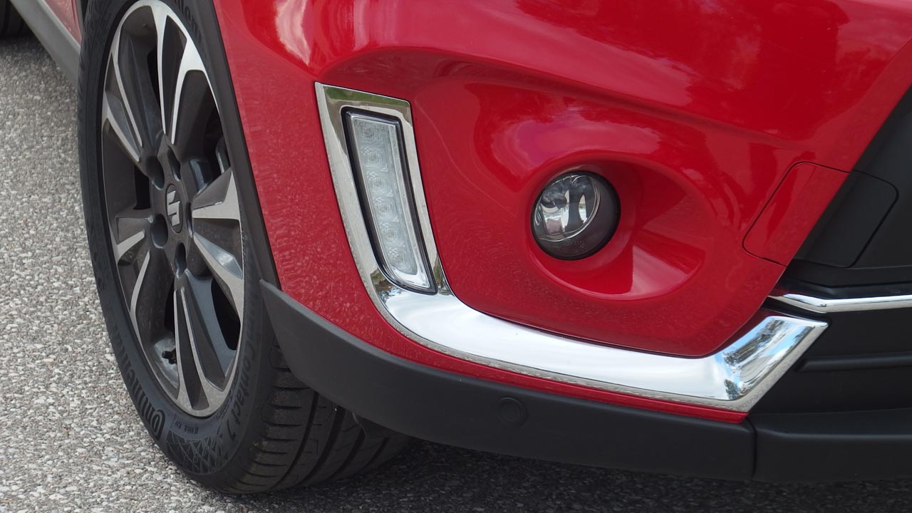 Το ανανεωμένο Suzuki Vitara το οδηγήσαμε πριν από περίπου έναν χρόνο και από τότε δεν έχει αλλάξει. Όπως και τότε, έτσι και τώρα, το μοντέλο της δοκιμής μας έχει διατηρήσει τα χαρακτηριστικά που το έκαναν γνωστό και εφοδιάζεται με τον ανασχεδιασμένο προφυλακτήρα, τη νέα μάσκα εμπρός και τους νέους LED προβολείς. Αλλαγές υπάρχουν και στο πίσω μέρος, οι οποίες πάντως είναι πιο δυσδιάκριτες, καθώς εντοπίζονται στα νέα κρύσταλλα των φώτων και στον ελαφρώς ανασχεδιασμένο προφυλακτήρα. Φυσικά η διχρωμία με την μαύρη οροφή δεν περνά απαρατήρητη, ενώ το ίδιο ισχύει και για τις χρωμιωμένες μπάρες οροφής. Το μήκος του ανανεωμένου Suzuki Vitara είναι στα 4.175 χλστ. το πλάτος στα 1.775 χλστ. και το ύψος στα 1.610 χλστ. Το μεταξόνιό του έχει μήκος 2.500 χλστ. ενώ η απόστασή του από το έδαφος είναι στα 185 χλστ. (τιμές ίδιες με αυτές της τετρακίνητης έκδοσης).
