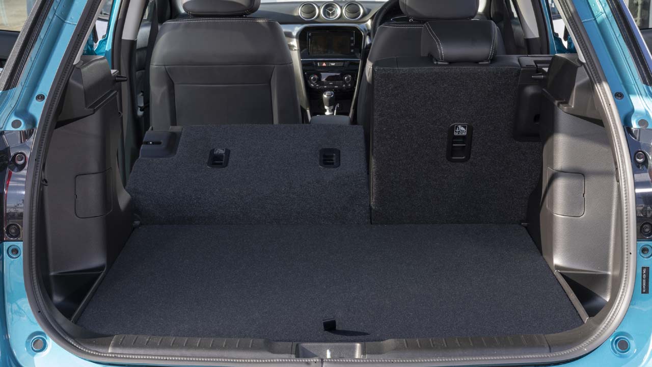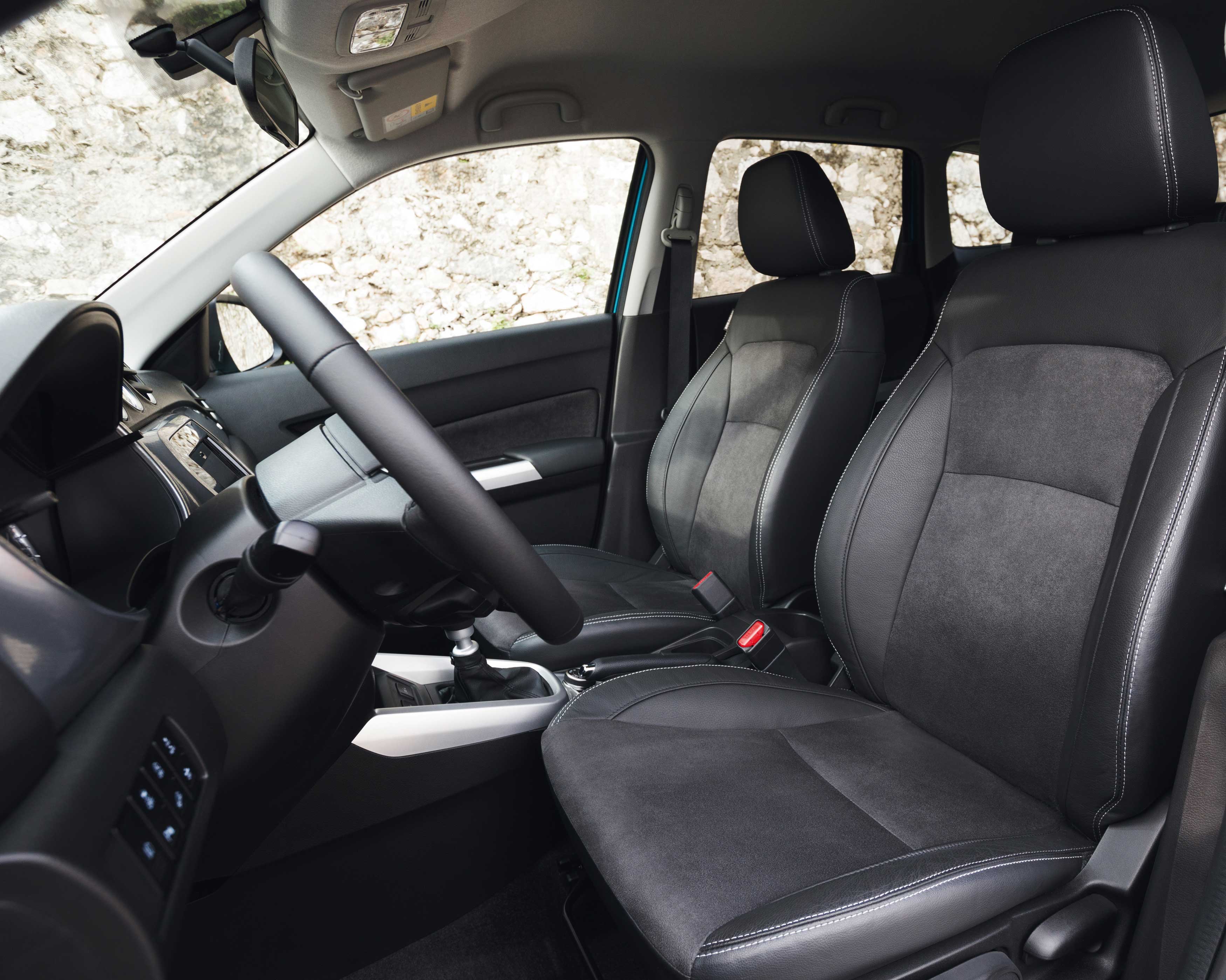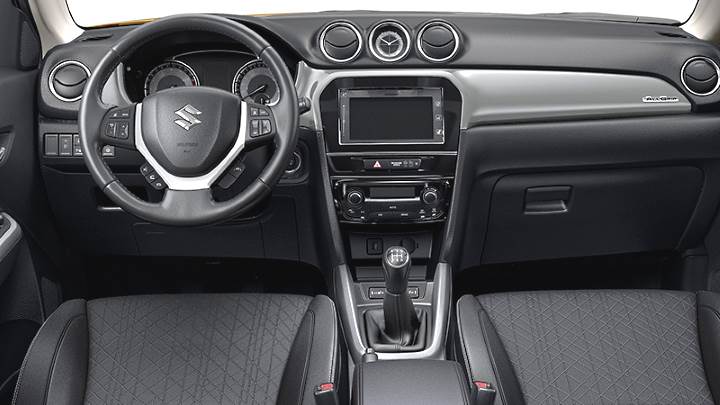 Τα ίδια ισχύουν και για το εσωτερικό του αυτοκινήτου. Και σε αυτό το Suzuki Vitara έχουν περάσει οι αλλαγές της ανανεωμένης έκδοσης. Έτσι παρουσιάζεται αναβαθμισμένο εκεί όπου πραγματικά το είχε ανάγκη. Πλέον, το σκληρό πλαστικό στο άνω μέρος του ταμπλό έχει αντικατασταθεί από μαλακό υλικό, πολύ πιο ευχάριστο στην όψη και στην αφή, ενώ η συναρμογή σε πείθει για την ανθεκτικότητά της στον χρόνο. Στις πόρτες τα πάνελ των θυρών παραμένουν σκληρά. Ο πίνακας οργάνων είναι ανασχεδιασμένος και στο κέντρο του έχει έγχρωμη οθόνη η οποία προβάλει ενδείξεις του υπολογιστή ταξιδιού αλλά και της τετρακίνησης και πλέον και του υβριδικού συστήματος (φόρτιση, στάθμη ενέργειας μπαταρίας κλπ). Στο κέντρο του ταμπλό υπάρχει έγχρωμη οθόνη αφής 7,0 ιντσών για το σύστημα πολυμέσων, ενώ λίγο πιο κάτω είναι τα χειριστήρια του κλιματισμού, ο οποίος συνοδεύεται από οθόνη υγρών κρυστάλλων για τις απαραίτητες ενδείξεις θερμοκρασίας και κατεύθυνσης του αέρα. Εργονομικά, αν εξαιρέσουμε το κουμπί για τις ενδείξεις του υπολογιστή ταξιδιού το οποίο βρίσκεται στο ταμπλό και απαιτεί να πάρεις το χέρι σου από το τιμόνι για να το πατήσεις, δεν υπάρχουν ατέλειες. Η χωρητικότητα της καμπίνας δεν έχει αλλάξει σε σχέση με τις συμβατικές εκδόσεις. Τέσσερα άτομα θα βολευτούν άνετα, ενώ ο μεσαίος επιβάτης στο πίσω κάθισμα θα ενοχληθεί ελαφρώς από το τούνελ μετάδοσης, ανάμεσα στα πόδια του. Χώροι για αντικείμενα υπάρχουν αρκετοί, οι τσέπες στα πάνελ των εμπρός θυρών είναι μεγάλες, ενώ στα πάνελ των πίσω θυρών υπάρχει θήκη για μεγάλο μπουκάλι. Ο χώρος αποσκευών είναι στα 375 λίτρα και μπορεί να φτάσει στα 1.120 λίτρα με την αναδίπλωση του πίσω καθίσματος, το οποίο είναι διαιρούμενο σε αναλογία 60:40. Στοιχείο σημαντικό καθώς παραμένει ως έχει χωρίς να έχει επηρεαστεί από την ύπαρξη υβριδικού συστήματος/μπαταριών.