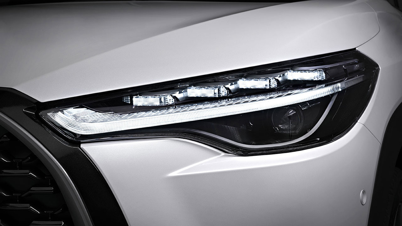 Σχεδιαστικά η Toyota έχει κάνει άλματα στη νέα γενιά των μοντέλων της και δυναμικές και αιχμηρές γραμμές, σε αμάξωμα με έντονο ανάγλυφο, διχρωμίες και επιθετικά σχεδιασμένα φωτιστικά σώματα. Η εποχή που τα μοντέλα της ιαπωνικής μάρκας ήταν από αδιάφορα έως και φοβισμένα μήπως και δεν… αρέσουν ή αν θέλετε εύπεπτα σχεδιαστικά για να μην κόβουν πωλήσεις… έχει περάσει ανεπιστρεπτί! Στο Corolla Cross η εμπρός μάσκα επιβάλει τον ρυθμό της και σε συνδυασμό με τα μακρόστενα φωτιστικά σώματα κάνουν το εμπρός μέρος να ξεχωρίζει. Το μήκος του αμαξώματος είναι στα 4.460 χλστ. ενώ η απόσταση από το έδαφος είναι στα 160 χλστ. Φυσικά τον σκληροτράχηλο SUV χαρακτήρα του αυτοκινήτου υπογραμμίζουν τα πλαστικά προστατευτικά γύρω από το αμάξωμα, οι ράγες οροφής και τα σκαλοπάτια.