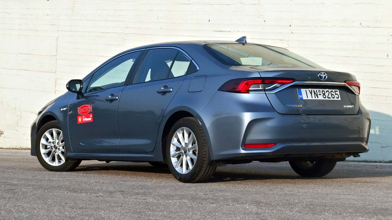 Σε αντίθεση με ότι ισχύει με την πεντάθυρη έκδοση του Toyota Corolla, εδώ δεν έχουμε δύο υβριδικές εκδόσεις, ούτε μοτέρ βενζίνης 1.2 λτ. τούρμπο. Στην περίπτωση της Corolla με το Sedan αμάξωμα έχουμε μία έκδοση βενζίνης με ατμοσφαιρικό μοτέρ 1.6 λτ. (χειροκίνητο 6άρι κιβώτιο ή αυτόματο CVT) με 132 ίππους και την υβριδική 1.8 λτ. που δοκιμάζουμε και εδώ. Ο βενζινοκινητήρας της αποδίδει 98 ίππους στις 5.200 σ.α.λ. και 142 Nm ροπής στις 3.600 σ.α.λ. Από την άλλη το ηλεκτρικό μοτέρ αποδίδει 72 ίππους και 163 Nm ροπής. Συνδυαστικά τα δύο μοτέρ αποδίδουν 122 ίππους και χαρίζουν στο αυτοκίνητο 0-100 χλμ./ώρα σε 11,0 δλ. και τελική ταχύτητα 180 χλμ./ώρα, σε συνδυασμό με και το αυτόματο κιβώτιο eCVT. Η μέση κατανάλωσή του είναι στα 4,2 λίτρα/100 χλμ. και οι εκπομπές ρύπων στα 98 γρ./χλμ. σύμφωνα με το νέο, αυστηρότερο κύκλο μετρήσεων WLTP.