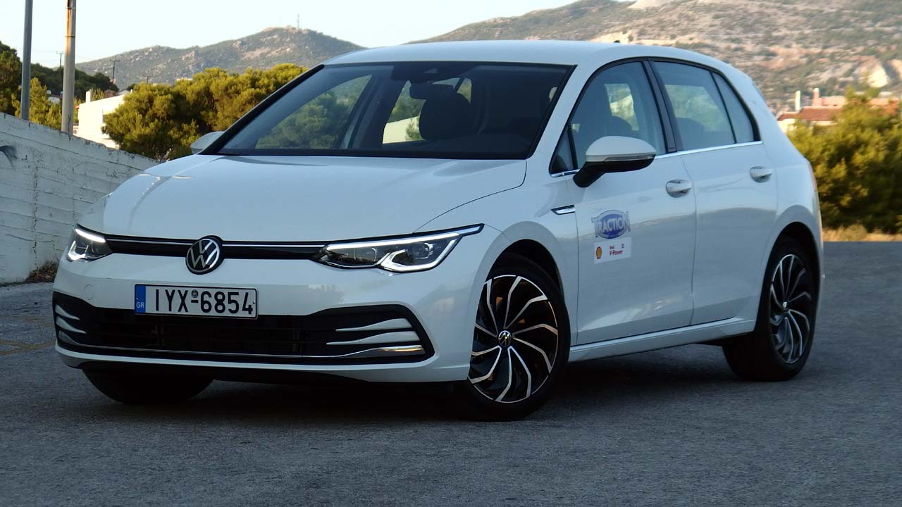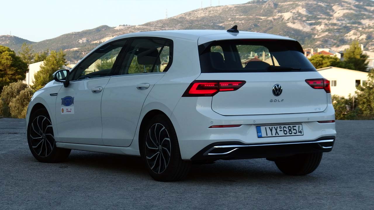 Κάτω από το καπό του, το VW Golf της δοκιμής μας έχει τον 1.5 λτ. eTSI (με το e πριν από το TSI να υποδηλώνει ήπια υβριδική τεχνολογία). Αυτό σημαίνει στην πράξη πως ο κινητήρας εσωτερικής καύσης συνδέεται με ιμάντα με γεννήτρια εκκίνησης και μέσω κυκλώματος 48V, αντλεί ενέργεια από τις μπαταρίες. Στην πράξη δεν καταλαβαίνεις κάτι, αλλά η VW αναφέρει πως η ύπαρξή του βελτιώνει κατά πολύ τις περιβαλλοντικές επιδόσεις του αυτοκινήτου. Οι Γερμανοί ανακοινώνουν μέση κατανάλωση στα 5,7 λίτρα/100 χλμ. Εμείς σε πραγματικές συνθήκες είδαμε μέση τιμή στα 7,2 – 7,5 λίτρα/100 χλμ. (τιμή που μπορεί να μειωθεί αν κινηθείς στο ECO αλλά και να ανέβει αν επιλέξεις το Sport και οδηγείς φυσικά με το ανάλογο στυλ). Όσον αφορά τις εκπομπές CO2 αυτές είναι στα 130 γρ./χλμ. Το μοτέρ αποδίδει 150 ίππους από τις 5.000 έως και τις 6.000 σ.α.λ. και 250 Nm ροπής από τις 1.500 έως και τις 3.500 σ.α.λ. Τιμές που χαρίζουν στο αυτοκίνητο 0-100 σε 8,5 δλ. και τελική ταχύτητα στα 224 χλμ./ώρα και επιταχύνει πρόθυμα το αυτοκίνητο, ενώ η ποιότητα λειτουργίας θα ικανοποιήσει και τους πιο απαιτητικούς.