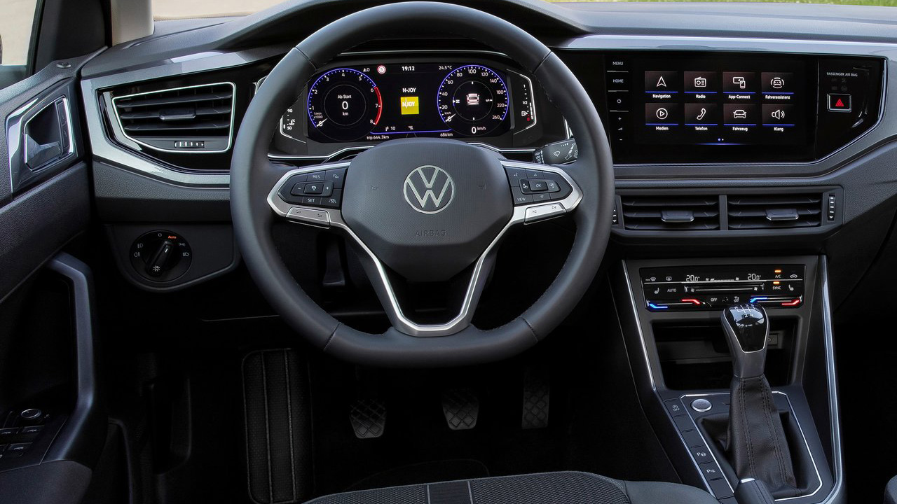 Ανοίγοντας την στιβαρή πόρτα του VW Polo, έρχεσαι αντιμέτωπος με μία εικόνα που ενθουσιάζει. Η γερμανική εταιρεία έχει δώσει ιδιαίτερη έμφαση στα υλικά και την συναρμολόγηση, γεγονός που επιβεβαιώνεται και από την απουσία τριγμών. Στο επάνω μέρος του ταμπλό συναντάμε μαλακά στην υφή πλαστικά, κάτι που δεν ισχύει βέβαια για τα κατώτερα τμήματα και τις επενδύσεις των πορτών. Το ψηφιακό περιβάλλον αποτελείται στην έκδοση “Life” της δοκιμής από μία κεντρική οθόνη αφής μεγέθους 6,5 ιντσών για ενημέρωση και ψυχαγωγία, ενώ πίσω από το τιμόνι υπάρχει μία δεύτερη οθόνη 8 ιντσών (Digital Cockpit την ονομάζει η Volkswagen) που παίζει τον ρόλο του πίνακα οργάνων. Στην κορυφαία έκδοση, το μέγεθος των συγκεκριμένων οθονών διαμορφώνεται στις 8 ή 9,2 ίντσες για το Infotainment και 10 για το Digital Cockpit Pro. Κάπου εδώ, αξίζει να αναφέρουμε πως το σύστημα αυτόματου κλιματισμού είναι διαθέσιμο μόνο στην έκδοση “Style” με το αυτοκίνητο της δοκιμής να φέρει Air Condition. Ασφαλώς δεν απουσιάζουν οι θύρες φόρτισης, θα θέλαμε ωστόσο και τυπικές υποδοχές USB, μιας και εξοπλίζεται μόνο με θύρες Type-C.