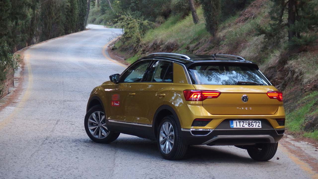 Το VW T-Roc από την πρώτη στιγμή σου δείχνει το στυλ του. Με το που κλείνεις την πόρτα εντυπωσιάζεσαι από την ηχομόνωση ενώ ξεκινώντας την οδήγηση η ποιότητα κύλισης σε κερδίζει. Η απόσβεση της ανάρτησης είναι πολύ καλή και μόνο σε κοφτές, απότομες ανωμαλίες και δει εγκάρσιες γίνεται απότομη. Το τιμόνι έχει καλό βάρος, το κιβώτιο είναι ευχάριστο κατά το κούμπωμα και δεν σκαλώνει ακόμη και σε γρήγορες αλλαγές, ενώ τα φρένα είναι ισχυρά και με προοδευτική υποβοήθηση. Στον αυτοκινητόδρομο είναι στιβαρό και παραμένει ήσυχο, ενώ σε γρήγορες καμπές δεν επιτρέπει έντονες κλίσεις στο αμάξωμα η ανάρτηση. Γενικώς η οδική συμπεριφορά του γερμανικού SUV εμπνέει σιγουριά. Εκτός δρόμου θα πάει αλλά δεν είναι στο στοιχείο του, ενώ όσοι ενδιαφέρεστε για γωνίες εισόδου, εξόδου και ράμπας, αυτές είναι στις 16.4, 18.8 και 12.8 μοίρες αντίστοιχα.