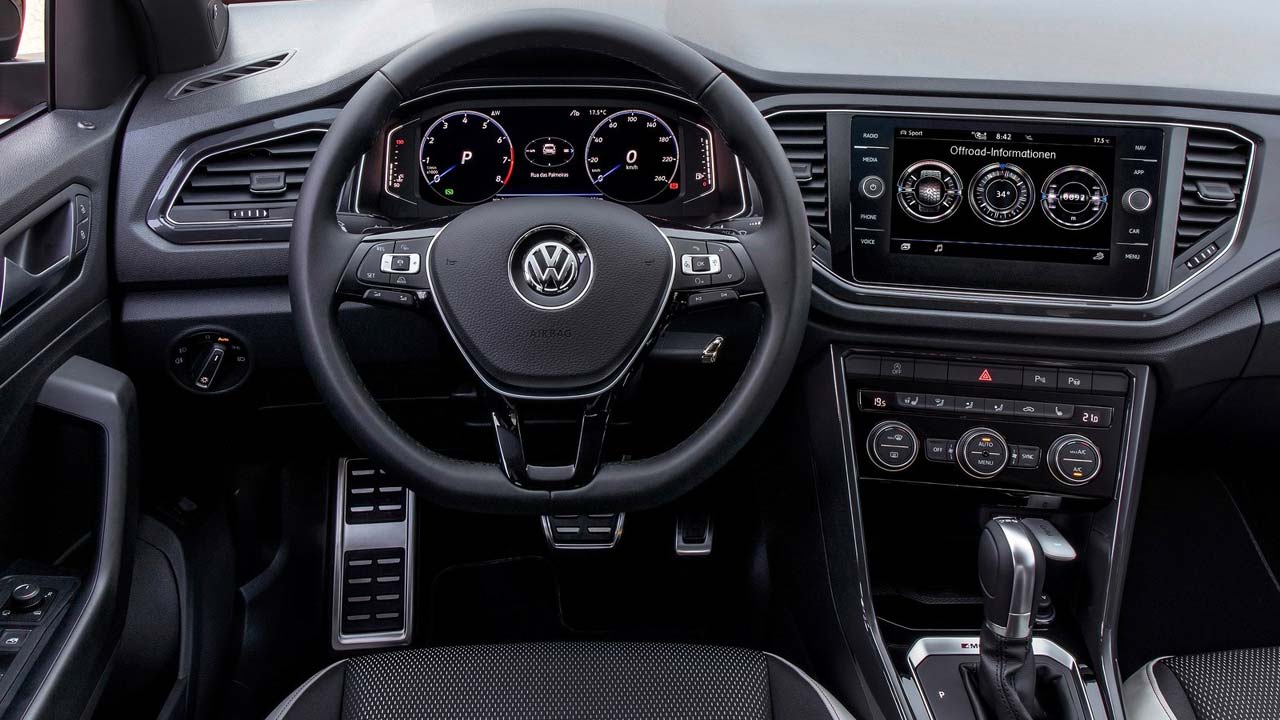 Μπαίνοντας στο εσωτερικό του VW T-Roc, αυτό που σου κάνει αίσθηση είναι η πολύ καλή θέση οδήγησης χάρη και στο μεγάλο εύρος ρυθμίσεων. Οι επενδύσεις του σαλονιού είναι ποιοτικές, η διχρωμία ταιριάζει με το αμάξωμα και η ψηφοποίηση είναι έντονη. Ειδικά αν επιλέξετε ψηφιακό πίνακα οργάνων που σε συνδυασμό με την ευκρινέστατη και με εξαιρετικά γραφικά και απόκριση οθόνη αφής του συστήματος πολυμέσων σου θυμίζουν πως βρίσκεσαι σε ένα σύγχρονο αυτοκίνητο. Τα υλικά που έχει χρησιμοποιήσει η VW πάντως δεν είναι μαλακά στο ταμπλό ή στα πάνελ των θυρών, καθώς στο σύνολό τους είναι σκληρά. Παρόλα αυτά η συναρμογή τους είναι πολύ καλή και δεν επιτρέπει τριγμούς. Εξαιρετικά προσεγμένη είναι και η εργονομία του αυτοκινήτου. Μόλις εξοικειωθείς με τα ηλεκτρονικά συστήματα και τις λειτουργίες των φυσικών κουμπιών αλλά και αυτών της αφής, ο χειρισμός όλων είναι εύκολος και δεν σε αποπροσανατολίζει από τα τεκταινόμενα του δρόμου. Οι χώροι είναι πολύ καλοί για τέσσερις ενήλικες, ενώ τρία άτομα μετρίου αναστήματος μπορούν να βολευτούν στο πίσω κάθισμα, με το τούνελ στο δάπεδο να είναι το μόνο που θα ενοχλήσει τον μεσαίο επιβάτη. Ο χώρος αποσκευών είναι στα 445 λίτρα και με την αναδίπλωση του πίσω καθίσματος φτάνει στα 1.290 λίτρα. Θήκες για αντικείμενα υπάρχουν πολλές και σε διάφορα σημεία του εσωτερικού, ευνοώντας την πρακτικότητα.