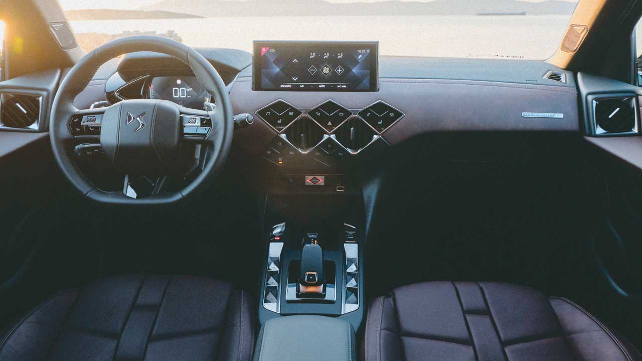 Περνώντας στο εσωτερικό, ό,τι είχαμε πρωτοδεί στο DS 7 Crossback ομολογουμένως είχε ξαφνιάσει με την πρωτοτυπία των υλικών και τη σχεδιαστικά άποψη. Αναμφίβολα εκπροσωπούσε πλήρως τη φιλοσοφία που στόχευε η βαριά κληρονομιά του ονόματος και φυσικά υπάρχει στο άρτι αφιχθέν DS 3 Crossback. Ιδιαίτερα υλικά, δουλεμένα από ξεχωριστούς τεχνίτες, εξαιρετικός τρόπος συναρμογής αλλά και τεχνολογίες που συμπληρώνουν και προστατεύουν οδηγό και επιβάτες δίνουν εντυπωσιακό παρών στην ολοκαίνουργια δημιουργία των Γάλλων. Ένα προϊόν με έντονο το γαλλικό στοιχείο, αφού από τον σχεδιασμό του μέχρι και την κατασκευή όλα γίνονται επί γαλλικού εδάφους. Ένα σημαντικό στοιχείο διαφοροποίησης, όπως και στο DS 7 Crossback, ήταν η μεταφορά των διακοπτών λειτουργίας των παραθύρων, ρύθμισης καθρεπτών αλλά και της κλασσικής ασφάλειας των θυρών από τις πόρτες στην κεντρική κονσόλα. Με αποτέλεσμα να είναι κομψή αλλά και υψηλής τεχνολογίας φιλοξενώντας τον επιλογέα του κιβωτίου ταχυτήτων, όλους τους διακόπτες που προανάφερα αλλά και το μπουτόν εκκίνησης του κινητήρα χωρίς κλειδί και την επιβράδυνση με τη βοήθεια του ηλεκτρικού φρένου, το οποίο διατίθεται ως στάνταρ εξοπλισμός. Το πολυτελές εσωτερικό συμπληρώνεται και από το ταμπλό που μπορεί να είναι επικαλυμμένο με υλικά υψηλής ποιότητας, όπως δέρμα alcandara ή Nappa. Ο πίνακας οργάνων διαμορφώνεται 100% από τον οδηγό σε μια οθόνη 7 ιντσών, ενώ η κεντρική οθόνη αφής 10,3 ιντσών διαθέτει σύστημα πλοήγησης και όλες τις σύγχρονες τεχνολογίες συνδεσιμότητας και εξυπηρέτησης του οδηγού. Ένας ακόμη σημαντικός παράγοντας, που αναβαθμίζει την παροιμιώδη άνεση των DS, είναι ότι τα καθίσματα οδηγού-συνοδηγού γεμίζουν με αφρό υψηλής πυκνότητας αλλά και η παραδοσιακή συμπεριφορά τις ανάρτησης. Φυσικά τα καθίσματα μπορεί να είναι ηλεκτρικά, θερμαινόμενα αλλά και να προσφέρουν μασάζ. Επίσης η ηχομόνωση ήταν ένα πολύ σημαντικό ζήτημα που απασχόλησε τους μηχανικούς εξέλιξη του DS 3 Crossback. Για τον λόγο αυτό προσέφυγαν σε πολλές τεχνικές λύσεις, αυξάνοντας για παράδειγμα το πάχος των πάνελ στις πόρτες, τη χρήση πυκνωμένου γυαλιού και την υιοθέτηση ακουστικού παρμπρίζ. Τέλος την ηχητική ικανοποίηση ανέλαβε η γαλλική Focal, ανανεώνοντας τη συνεργασία με την DS με ένα ποιοτικό σύνολο.