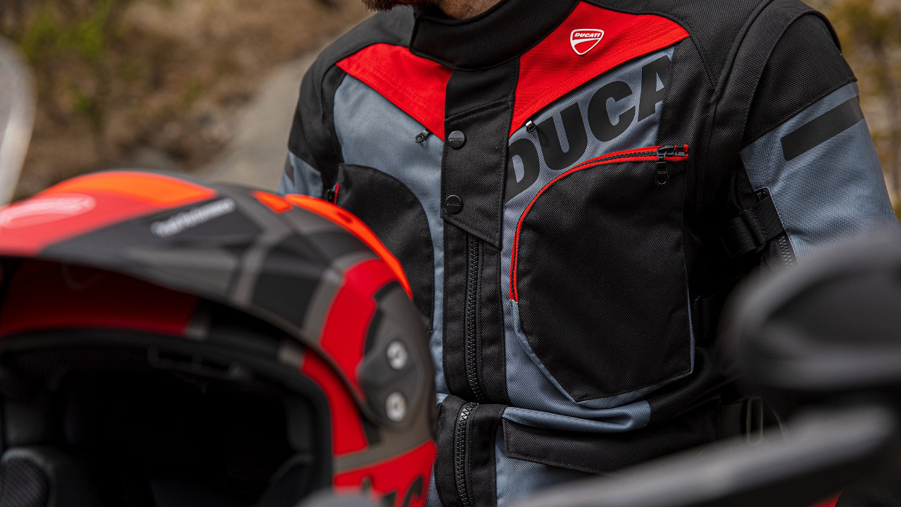 Για τους ταξιδιώτες μεγάλων αποστάσεων που οδηγούν μοτοσυκλέτες κάτω από όλες τις καιρικές συνθήκες, η συλλογή Touring ανανέωσε τo σετ Strada C5 (παντελόνι-jacket), η οποία είναι πλέον εφοδιασμένη με νέες έξυπνες ιδέες, όπως η δυνατότητα να ζεσταθεί ή να αεριστεί έτσι ώστε να προσαρμοστεί καλύτερα στις εξωτερικές θερμοκρασίες. Διαθέσιμο σε ανδρικά και γυναικεία νούμερα, τo σετ Strada C5 θυμίζει τα χρώματα της νέας Multistrada V4 Rally, επιτυγχάνοντας με αυτόν τον τρόπο το απόλυτο “δέσιμο” μεταξύ μοτοσυκλέτας και αναβάτη