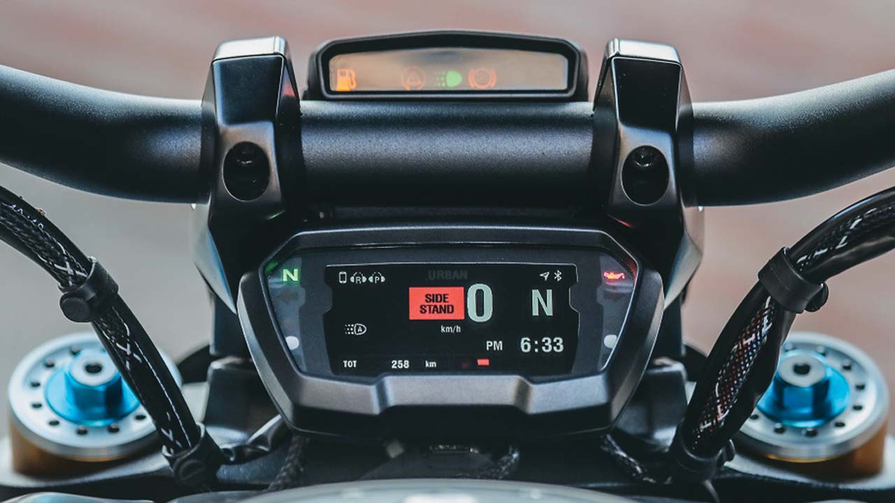 Ο πίνακας οργάνων συνδυάζει οθόνη TFT με ένα ξεχωριστό πάνελ ενδείξεων, που βρίσκονται πάνω και κάτω από το τιμόνι, αντίστοιχα. Προσφέρει τέσσερις επιλογές απεικόνισης: για τα βασικά στοιχεία ή τις οθόνες Track, Full και City, ανάλογα με το περιβάλλον κίνησης.