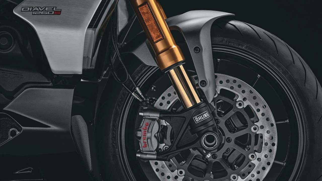 Στην Diavel 1260 S το σετ των πλήρως ρυθμιζόμενων αναρτήσεων προέρχεται από την Οhlins, ανεβάζοντας ακόμη περισσότερο τη σπορ ταυτότητα της S έκδοσης.