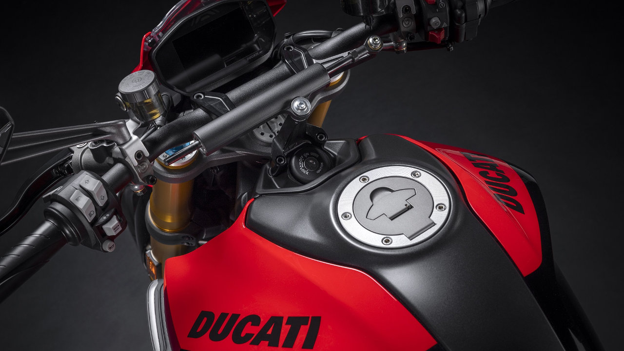Τα riding modes Sport, Touring και Wet επιτρέπουν στον αναβάτη να διαμορφώσει τον οδηγικό χαρακτήρα της Monster ανάλογα με τις επιθυμίες του και τις ανάγκες της κάθε διαδρομής. Τα πάντα ρυθμίζονται ιδιαίτερα εύκολα μέσω των χειριστηρίων του τιμονιού και της έγχρωμης οθόνης TFT 4,3 ιντσών. Η οθόνη διαθέτει αγωνιστικά γραφικά που θυμίζουν εκείνα της Panigale V4, με μεγάλο στροφόμετρο και ένα πλήρες σύνολο πληροφοριών για την οδήγηση.