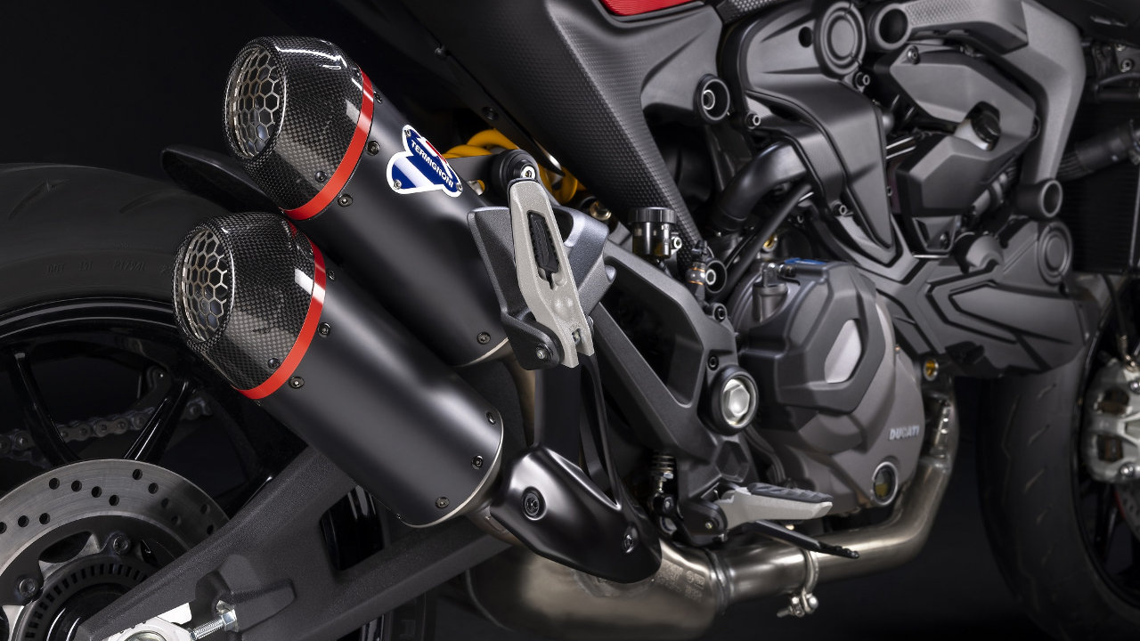 Ο σπορ χαρακτήρας της Monster SP γίνεται αμέσως εμφανής χάρη στα χρώματα που δανείζεται από την Desmosedici GP της ομάδας Ducati Lenovo του 2022, τη χρυσή ανοδίωση του πιρουνιού Öhlins NIX30 και την ύπαρξη ενός εγκεκριμένου τελικού της Termignoni στο στάνταρ εξοπλισμό. Σε όλα αυτά έρχονται να προστεθούν κάποιες χαρακτηριστικές λεπτομέρειες, όπως η κόκκινη σέλα, το λογότυπο Monster SP στο κάλυμμα της σέλας του συνοδηγού και το λογότυπο Ducati στο ρεζερβουάρ, το οποίο είναι μεγαλύτερο και εμπνευσμένο από τα γραφικά που υπάρχουν στην Panigale V4.