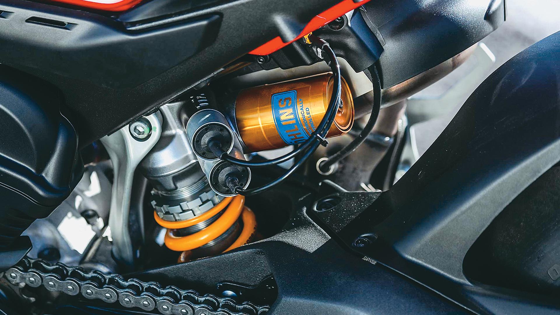 Το πακέτο των ηλεκτρονικών δεν μπορούσε παρά να είναι πλήρες και εντυπωσιακό. Πέρα από τα προγράμματα απόδοσης και την παραμετροποίησή τους, το Traction Control (DTC EVO) συνοδεύεται από το Slide Control (DSC) για τον έλεγχο των πλαγιολισθήσεων ισχύος και φυσικά όλα τα σχετικά: Ducati Power Launch (DPL), Quick Shifter (DQS) για ανεβάσματα και κατεβάσματα που, συνοδευόμενο από τον μονόδρομο συμπλέκτη και τον Engine Brake Control για τον έλεγχο του φρένου του κινητήρα (Engine Brake Control), προσφέρει άλλη αίσθηση στην τόσο απαιτητική ζώνη της επιβράδυνσης. Στο ηλεκτρονικό πάρτι συγκαταλέγονται και ο προβολέας LED με Daytime Running Light (DRL), σταμπιλιζατέρ της Sachs, επιλογές γρήγορου ελέγχου, αυτόματη απενεργοποίηση φλας.