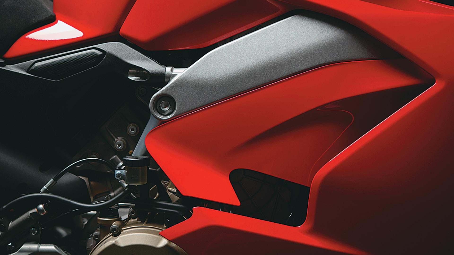 Το πόσο κοντά είναι η Panigale V4 στον κόσμο των αγώνων, υπογραμμίζεται και από το ελαφρύ, αλουμινένιο, χωρητικότητας 16 λίτρων ντεπόζιτο. Όπως συμβαίνει και με τις αγωνιστικές μοτοσυκλέτες, ένα τμήμα του είναι τοποθετημένο κάτω από τη σέλα του οδηγού. Ο χώρος του που δεν προορίζεται για καύσιμο, στο μπροστά μέρος του, έχει χρησιμοποιηθεί για να τοποθετηθούν όλα τα ηλεκτρονικά.