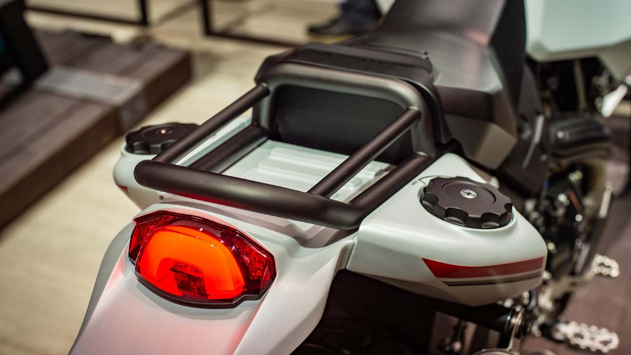 Η μονή σέλα είναι άλλη μια «δήλωση» της μοτοσυκλέτας ως προς την πρόθεσή της για δύσκολες αποστολές. Αν και όταν βρει τελικά τον δρόμο για την παραγωγή, είναι βέβαιο ότι η σχάρα, που τώρα δημιουργεί μια επιπλέον αποθηκευτική «φωλιά», θα εναλλάσσει τη θέση της με μια σέλα για τον συνεπιβάτη, ώστε να μην αποτελέσει το γεγονός ανασταλτικό παράγοντα για την επιλογή της.