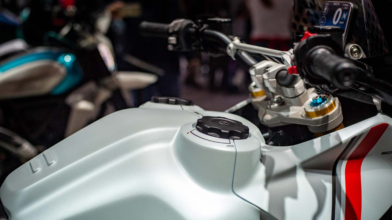 Για τους εξωτερικούς παρατηρητές, οι τέσσερις (!) τάπες για τα ισάριθμα ρεζερβουάρ καυσίμου δεν έχουν ανάλογο στην αγορά. Δύο στη συμβατική θέσω του ρεζερβουάρ και άλλες δύο στο πίσω μέρος, που οδηγούν το καύσιμο κάτω από τη σέλα. Mini ανθεκτική σχάρα, μπάρα στο τιμόνι, προστατευτική ποδιά από ανθρακονήματα, ανθεκτικές χούφτες, κάθετα τοποθετημένη εξάτμιση από την Termignoni συμπληρώνουν περίτεχνα την εικόνα.