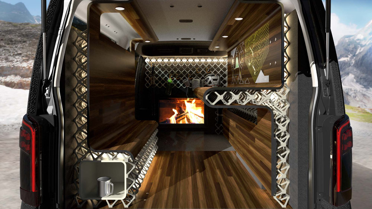 Βασισμένο στο νέο Caravan, το εντυπωσιακό van μεταφέρει τo πρωτότυπο του “base camp” σε ένα νέο επίπεδο. Το βαν είναι εξοπλισμένο με πτυσσόμενο ηλιακό πάνελ τοποθετημένο στην οροφή, με περισσότερα ηλιακά πάνελ στο πλάι, αντικαθιστώντας τα τυπικά κρύσταλλα. Στο εσωτερικό, οι ανέσεις για τους επιβαίνοντες περιλαμβάνουν μια εκλεπτυσμένη θέση εργασίας, τοιχώματα που λειτουργούν με βοηθητικό εξοπλισμό και ένα ψηφιακό τζάκι για μια χαλαρωτική, φιλική προς το περιβάλλον απόλαυση, μετά από μια πολύωρη διαδρομή. Το πρωτότυπο διαθέτει εμφάνιση σε πλήρη αρμονία με το ορεινό περιβάλλον, αποπνέοντας την κλασική αίσθηση των ορεινών καταλυμάτων.