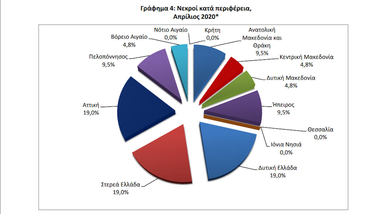 Και αν το νούμερο που συγκεντρώνει η Αττική επί του συνόλου των ατυχημάτων έχει λογική, αφού σε αυτή την περιφέρεια συγκεντρώνεται και το μεγαλύτερο μέρος του πληθυσμού της χώρας, σοκ προκαλεί το πώς κατανέμονται οι νεκροί στην Ελλάδα. Στις κορυφαίες θέσεις βρίσκεται και πάλι η Αττική έχοντας το 19% επί του συνόλου. Ακριβώς το ίδιο ποσοστό όμως βλέπουμε για τη Στερεά αλλά και για τη Δυτική Ελλάδα! Με μηδενικό ποσοστό (!) παρουσιάζονται το Νότιο Αιγαίο και η Κρήτη με τη δεύτερη να αποτελεί σίγουρα την ευχάριστη έκπληξη, έχοντας παράλληλα μόλις το 2,5% επί του συνόλου των τροχαίων ατυχημάτων για τον περασμένο Απρίλιο.