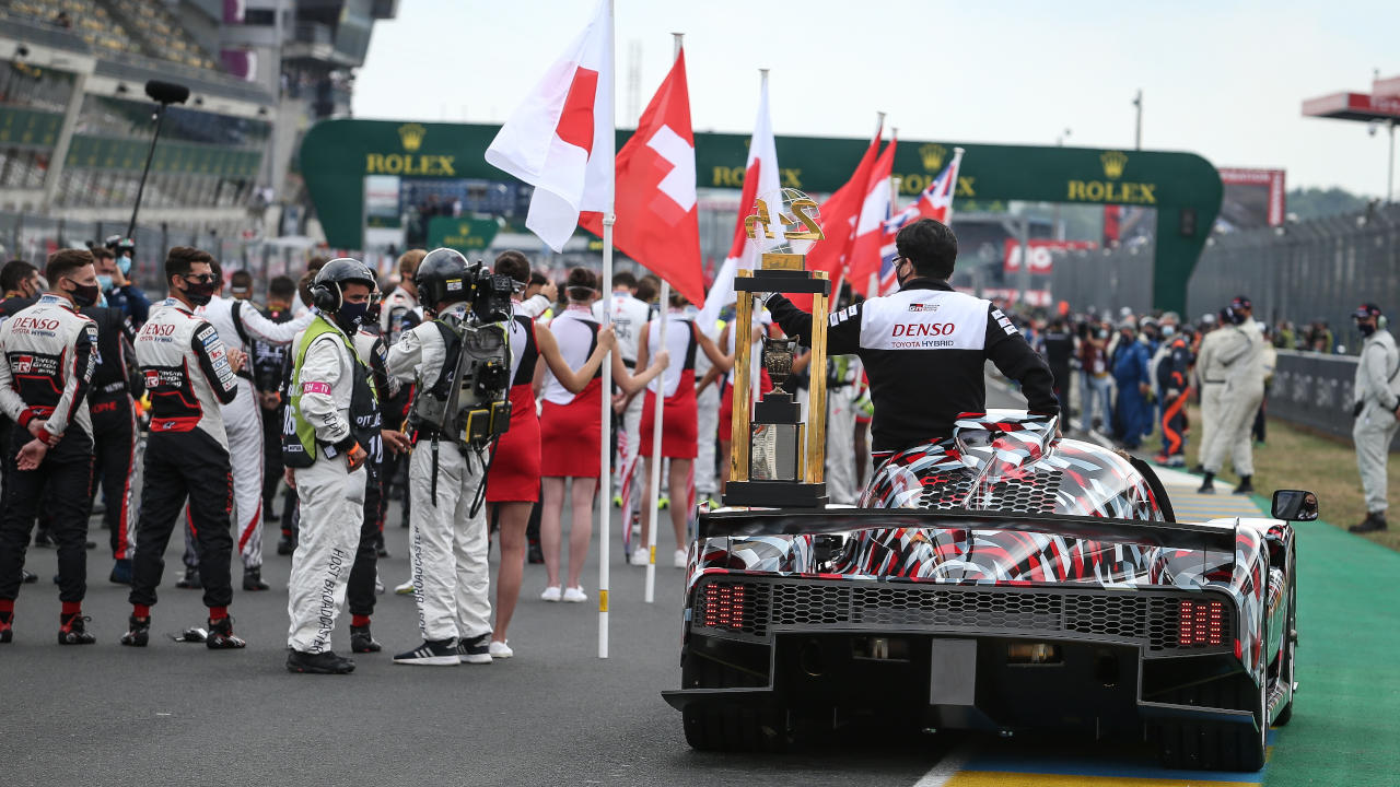 To Toyota GR Super Sport, το νέο υπεραυτοκίνητο που ετοιμάζει η ιαπωνική εταιρία, έδωσε το “παρών” στο 88ο 24ωρο του Le Mans κάνοντας την πρώτη δημόσια εμφάνιση του. Δεν ξέρουμε αν η παρουσία του έφερε γούρι στην αγωνιστική ομάδα της Toyota που κατάφερε να πάρει την τρίτη σερί νίκη για την ιαπωνική εταιρία στον θρυλικό αγώνα. Το σίγουρο είναι πως το νέο υπεραυτοκίνητο της Toyota τράβηξε πάνω του τα βλέμματα χάρη και στο καμουφλάζ της Gazoo Racing. Έπειτα συμμετείχε και στην τελετή παράδοσης του βαρύτιμου τρόπαιου στους οργανωτές, μία περίπου ημέρα πριν η Toyota το κάνει ξανά δικό της…