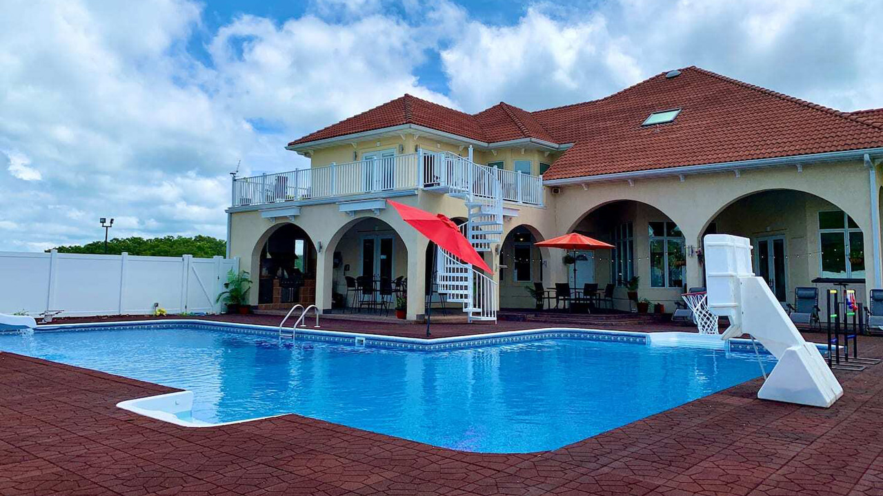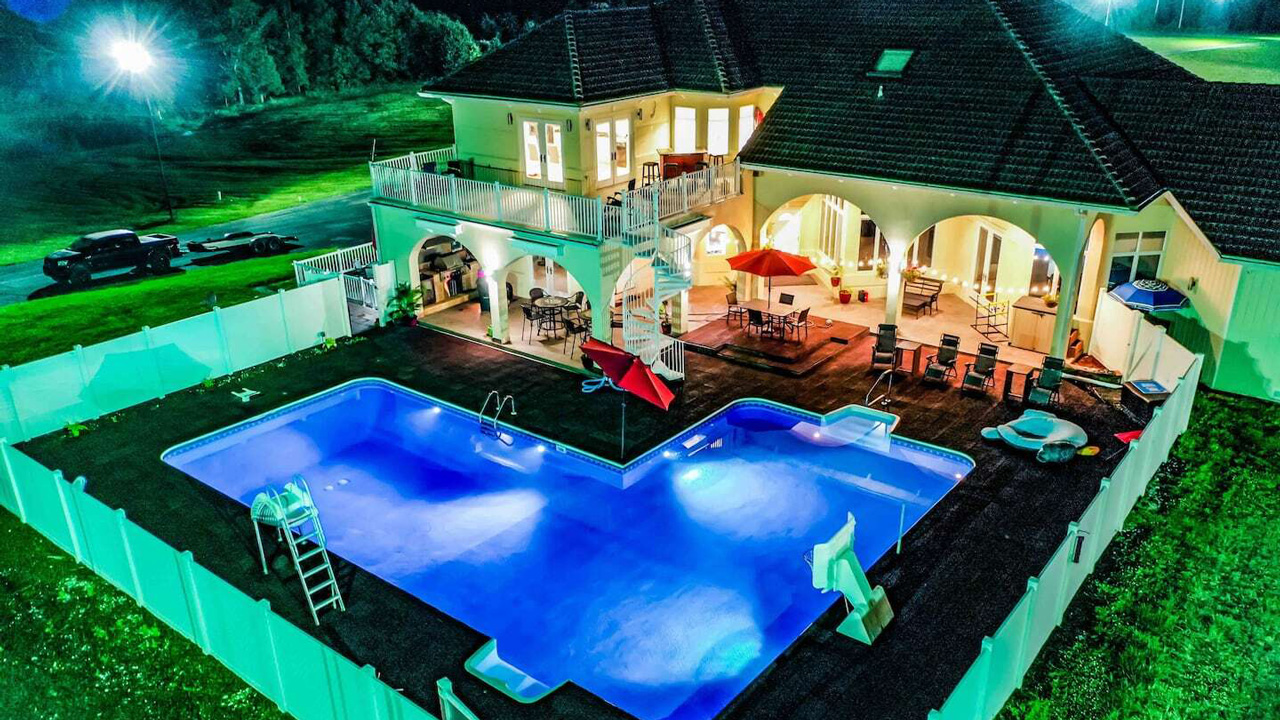 Η πολυτελής μονοκατοικία που βλέπουμε στις φωτογραφίες βρίσκεται στην πολιτεία Μιζούρι των Η.Π.Α. και καταλαμβάνει μία έκταση 60 στρεμμάτων. Όπως μπορείτε να δείτε και στην επίσημη αγγελία της πλατφόρμας, μπορεί θα φιλοξενήσει έως 16 άτομα στα έξι υπνοδωμάτια που διαθέτει. Οι παροχές είναι αρκετά ενδιαφέρουσες, όπως για παράδειγμα το γήπεδο για μπάσκετ ή τένις, το τραπέζι μπιλιάρδου και η πισίνα.