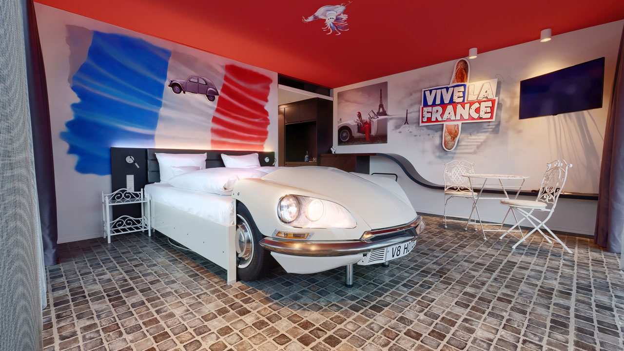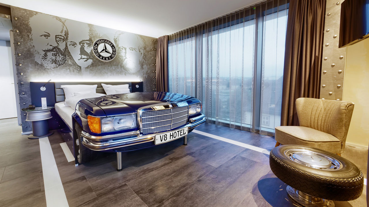 Είστε Alfista, λάτρης της βαυαρικής σχολής ή της Mercedes-Benz; Σε αυτό το ξενοδοχείο, το δωμάτιό σας θα έχει διακόσμηση σύμφωνα με τις αυτοκινητιστικές σας “αδυναμίες”. Ώρα να γνωρίσουμε το πολυτελές “V8 hotel” που απευθύνεται σε ανθρώπους που αγαπούν τα αυτοκίνητα και όχι μόνο.