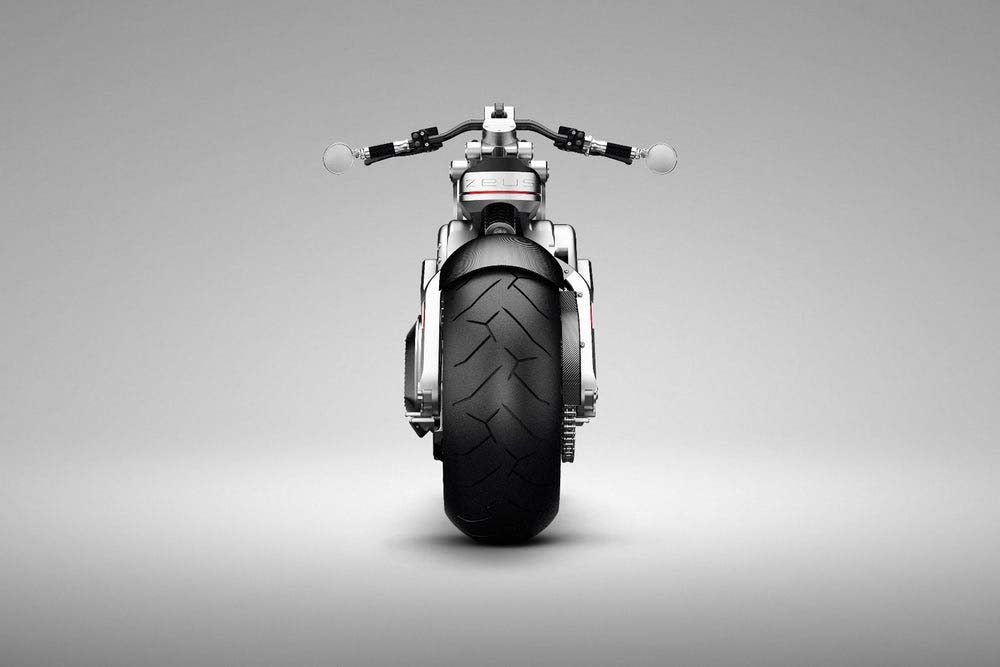 Τα βασικά βήματα του σχεδιασμού ξεκινούν με την απομάκρυνση του δοχείου καυσίμων και τη ρύθμιση της διάταξης των ηλεκτρικών εξαρτημάτων ώστε να ταιριάζουν καλύτερα στην κατανομή βάρους και την εργονομία του αναβάτη. Η Zeus είναι «χτισμένη» γύρω από ένα καθαρά αλουμινένιο πλαίσιο, με τα πίσω μπράτσα της ανάρτησης να είναι συνδεδεμένα με το μπλοκ του κινητήρα, ενώ η αλυσίδα βρίσκεται στα δεξιά τού πίσω τροχού και «επικοινωνεί» διαγώνια με τη μονάδα κίνησης που βρίσκεται κάτω από την πλατφόρμα του καθίσματος, ανάμεσα στον οδηγό και το κάθισμα του συνεπιβάτη. Υπάρχει επίσης μια οθόνη που μοιάζει με tablet και βρίσκεται πίσω από τον κεντρικό άξονα του τιμονιού και στην οποία εμφανίζονται όλα τα δεδομένα που αναζητεί ο οδηγός μιας σύγχρονης μοτοσυκλέτας.