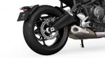 Στον τομέα των αναρτήσεων βλέπουμε ανεστραμμένο πιρούνι της Showa και ρυθμιζόμενο ως προς την προφόρτιση του ελατηρίου του αμορτισέρ επίσης από την ιαπωνική εταιρία, με τη διαδρομή εμπρός να φτάνει στα 120 χλστ. και τη διαδρομή του πίσω τροχού στα 133,5 χλστ.