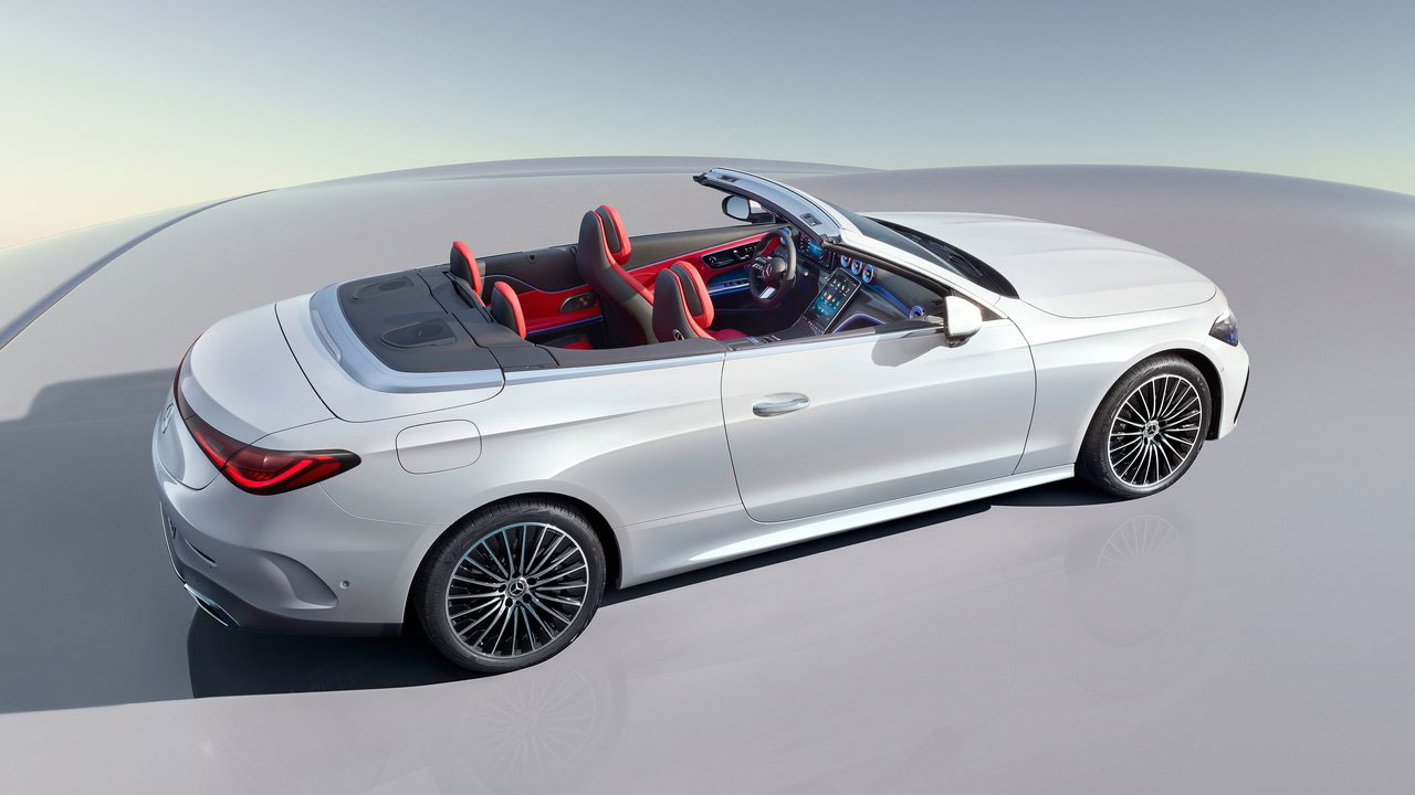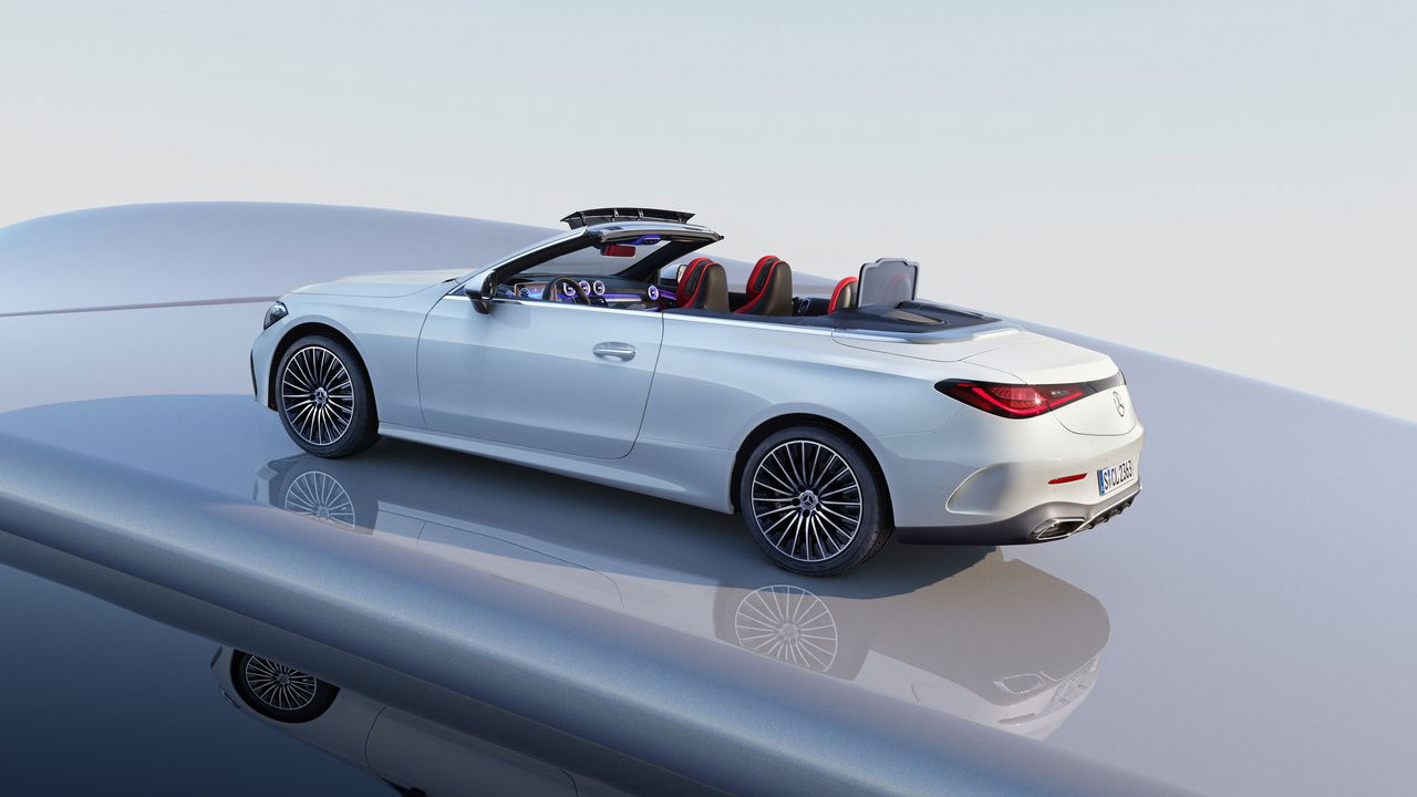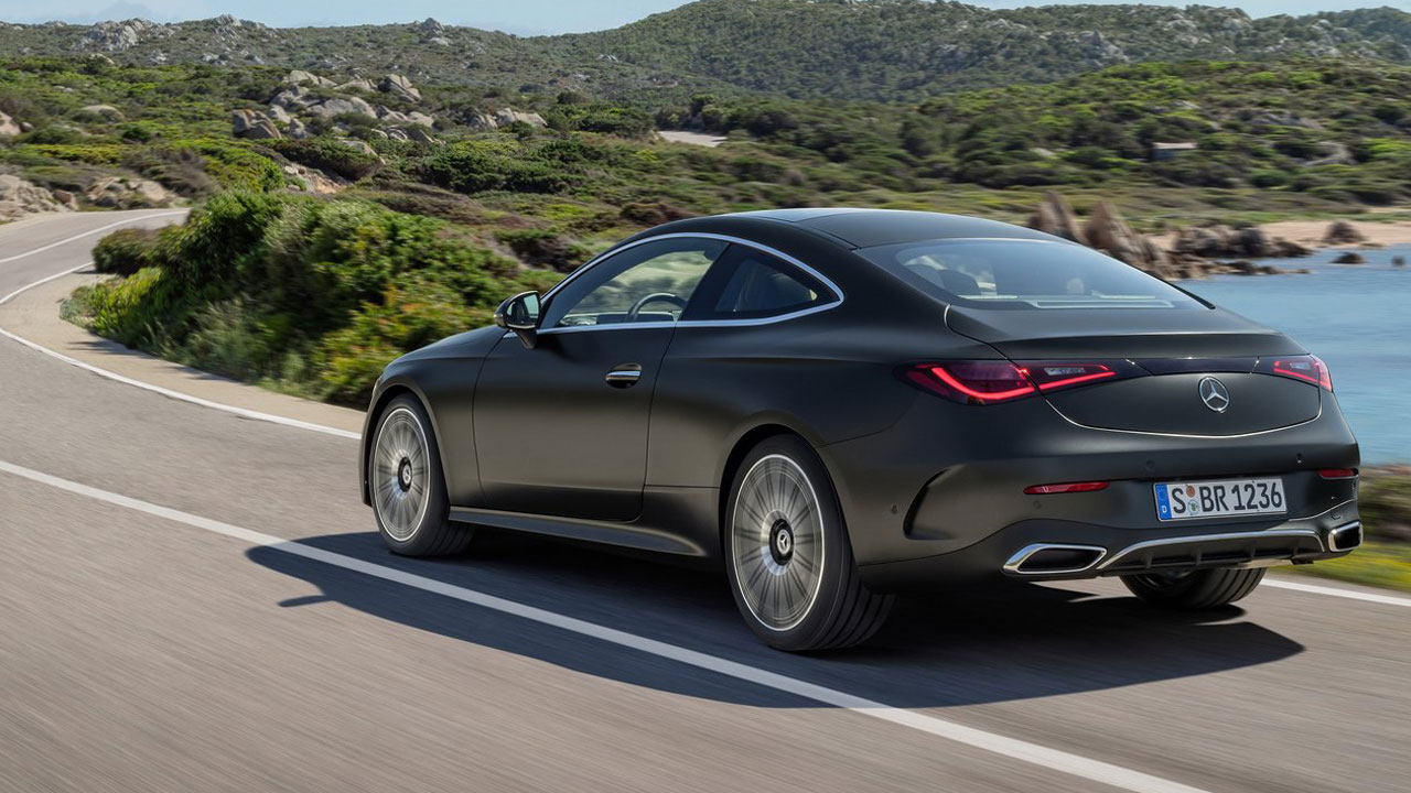 Ξεκινώντας από την εξωτερική εμφάνιση, βλέπουμε ένα δίπορτο αμάξωμα που συνδυάζει δυναμικά στοιχεία της εταιρείας, όπως το μεγάλο καπό και τα λεπτά Full LED φωτιστικά σώματα. Στο πίσω μέρος, συναντάμε φωτιστικά σώματα που ενώνονται στο κέντρο του αμαξώματος. Όσο για τις διαστάσεις, το μήκος αγγίζει τα 4.850 χιλιοστά, το πλάτος τα 1.860 και το ύψος τα 1.428 χιλιοστά, αριθμοί που καθιστούν την CLE ως το μεγαλύτερο κουπέ στη μεσαία κατηγορία.