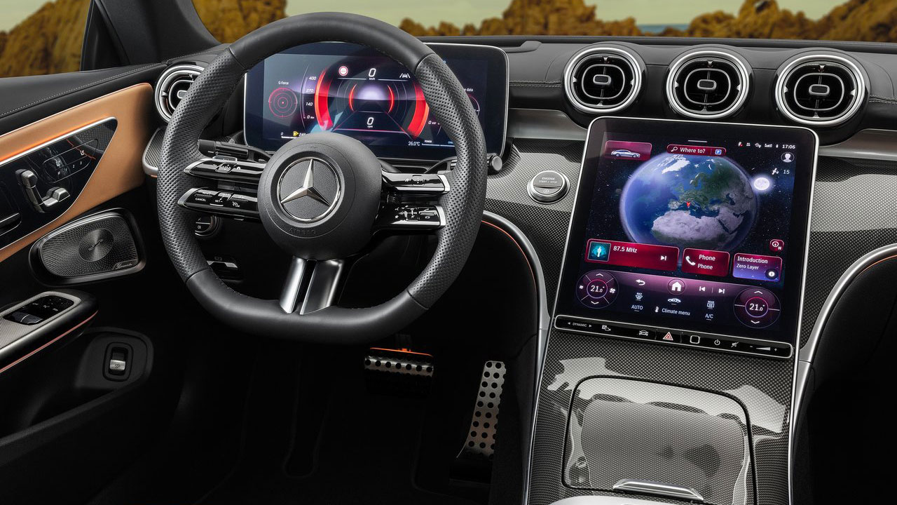 Το εσωτερικό θυμίζει σε μεγάλο βαθμό αυτό της Mercedes C-Class με δύο μεγάλες ανεξάρτητες οθόνες. Η μία βρίσκεται πίσω από το τιμόνι και το μέγεθός της αγγίζει τις 12,3 ίντσες. Η δεύτερη είναι αφής, κάθετα τοποθετημένη και φτάνει τις 11,9 ίντσες. Εννοείται ότι η καμπίνα ενσωματώνει και δυναμικό φωτισμό με 64 χρώματα που εντυπωσιάζει τη νύχτα. Όσο για τους χώρους, είναι σημαντικά μεγαλύτεροι από αυτούς της C-Class Coupe. Eιδικά οι πίσω επιβάτες επωφελούνται από 10 χιλιοστά περισσότερο χώρο για το κεφάλι, 19 χιλιοστά περισσότερο χώρο για τους ώμους και τους αγκώνες και 72 χιλιοστά περισσότερο χώρο για τα γόνατα. Ο όγκος του πορτμπαγκάζ προσφέρει 60 λίτρα περισσότερο όγκο και χωράει εύκολα τρεις τσάντες γκολφ.
