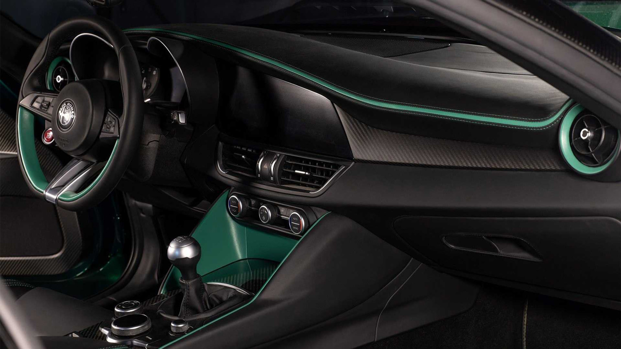 Από την άλλη, το πίσω μέρος δεν θυμίζει σε τίποτα μία Giulia, αφού υπάρχει μία προσέγγιση που παραπέμπει σε fastback αμάξωμα και όχι σε sedan. Το πιο εντυπωσιακό στοιχείο είναι σίγουρα η LED λωρίδα που θυμίζει κάτι από Aston Martin, αλλά και η διπλή απόληξη της εξάτμισης χαμηλά, στο κέντρο του προφυλακτήρα. Στο εσωτερικό, το περιβάλλον παραπέμπει σε μεγάλο βαθμό στην Giulia GTA, με τις κυριότερες αλλαγές να αποτελούν οι carbon επιφάνειες και οι “Montreal Green” πινελιές.