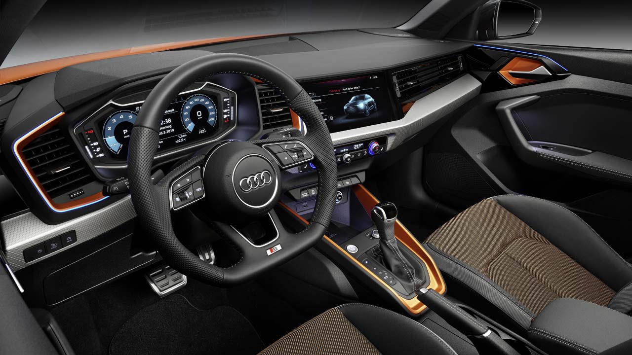 Εκτός από τη βασική έκδοσή του, το εσωτερικό έχει επίσης την έκδοση S line που βλέπουμε και στην εικόνα αλλά και τις advanced και design. Όσον αφορά τους χώρους της καμπίνας, αυτοί δεν έχουν αλλαγή σε σχέση με αυτούς του Audi A1 Sportback, ενώ ο χώρος αποσκευών είναι στα 335 λίτρα.