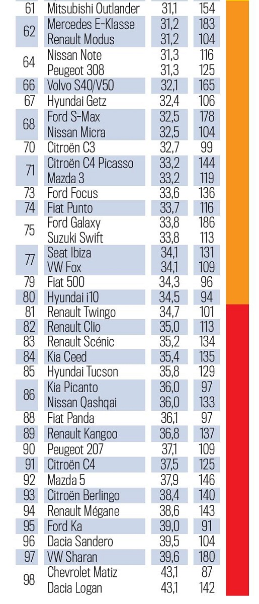 Πριν δούμε τα αποτελέσματα να πούμε πως ο TUV τονίζει ότι η έρευνα αξιοπιστίας είναι κάτι πολύ δύσκολο, ενώ υπογραμμίζει πως η αξιοπιστία κάθε αυτοκινήτου έχει να κάνει και με την σωστή συντήρησή του.