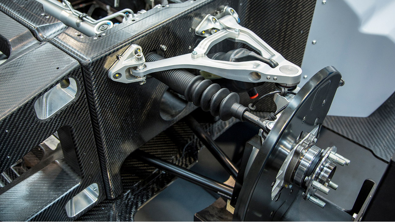 Το μονοκόκ πλαίσιο του ζυγίζει μόλις 120 κιλά και είναι κατασκευασμένο από ανθρακονήματα και η ανάρτηση είναι διπλά ψαλίδα για καθένα από τους τροχούς του. Οι τροχοί του έχουν διαστάσεις 20 και 21 ίντσες και φέρουν ελαστικά 265/35 και 325/30 εμπρός και πίσω αντίστοιχα.
