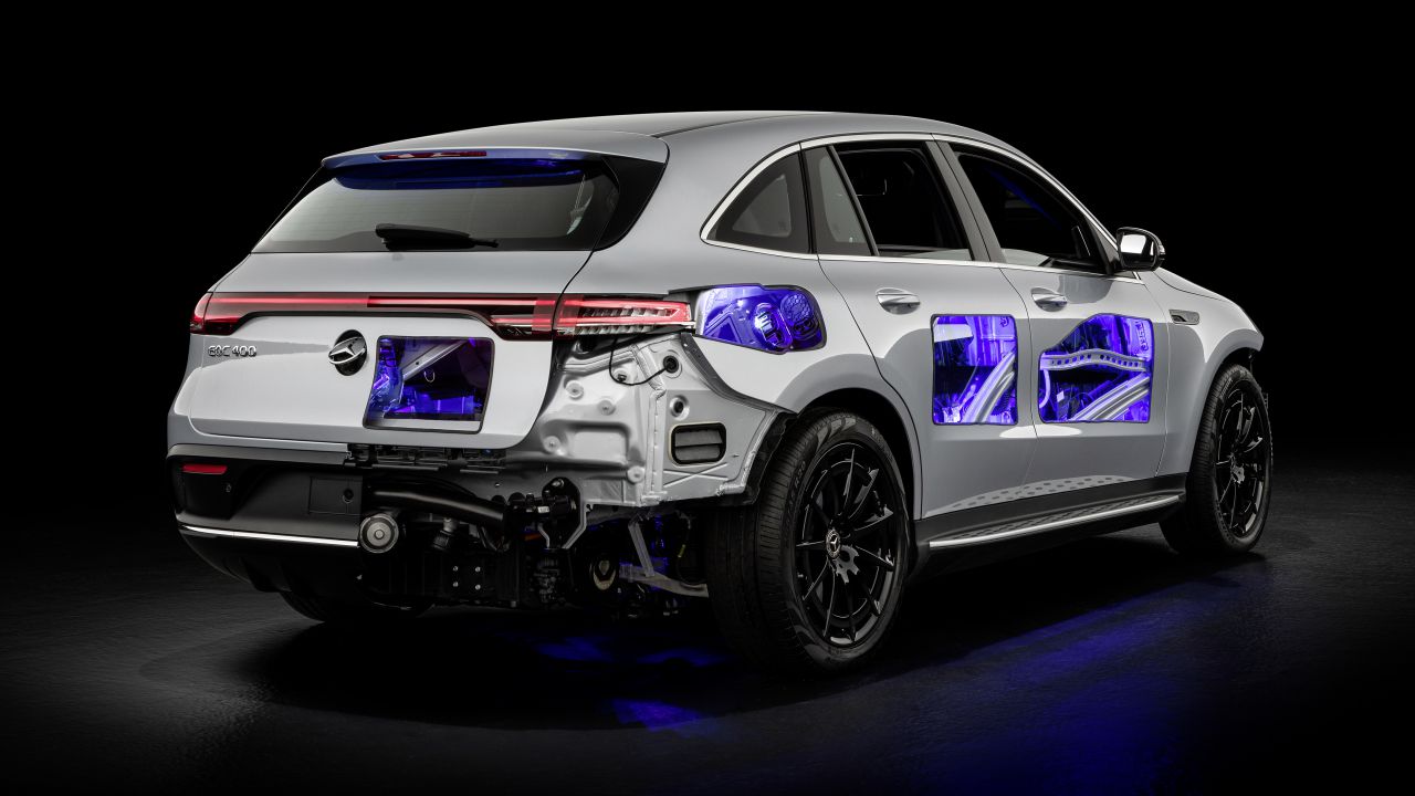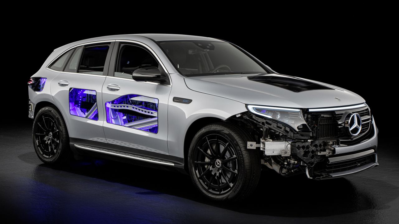 Το αυτοκίνητο που βλέπουμε δεν είναι τίποτα περισσότερο από μία πραγματική Mercedes EQC 400 4MATIC. Το αμιγώς ηλεκτρικό μοντέλο της γερμανικής φίρμας μετατράπηκε σε ένα project εκπαιδευομένων. Οι 40 νέοι μηχανικοί διατήρησαν τη μία πλευρά ως έχει αλλά έκοψαν καίρια σημεία του αμαξώματος της άλλης ώστε να είναι διαφανή τα εξαρτήματα.