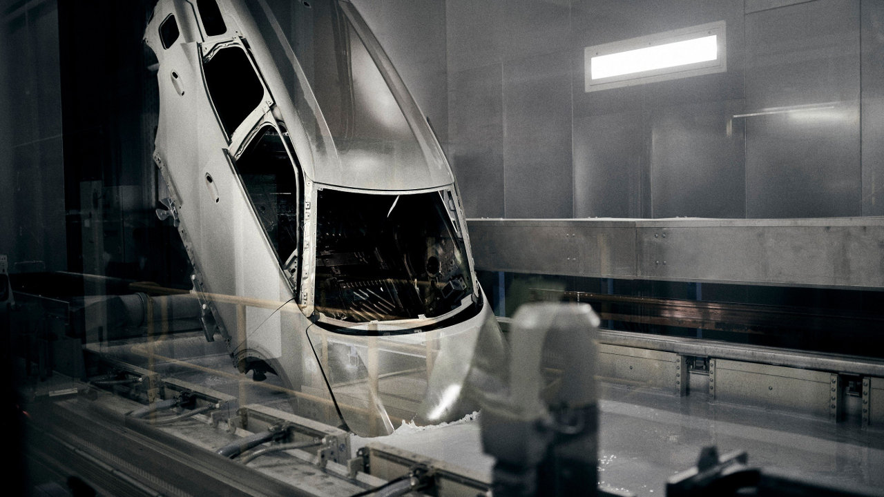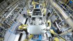 Σε αυτό το τμήμα, ένα πλήθος από ρομπότ αναλαμβάνει εργασίες για τα πάντα – από την επιλογή και την τοποθέτηση των επιμέρους εξαρτημάτων, έως και τη μεταφορά μεγάλων φύλλων μετάλλου, με πάνω από 600 συνολικά να λειτουργούν σε αγαστή συνεργασία.