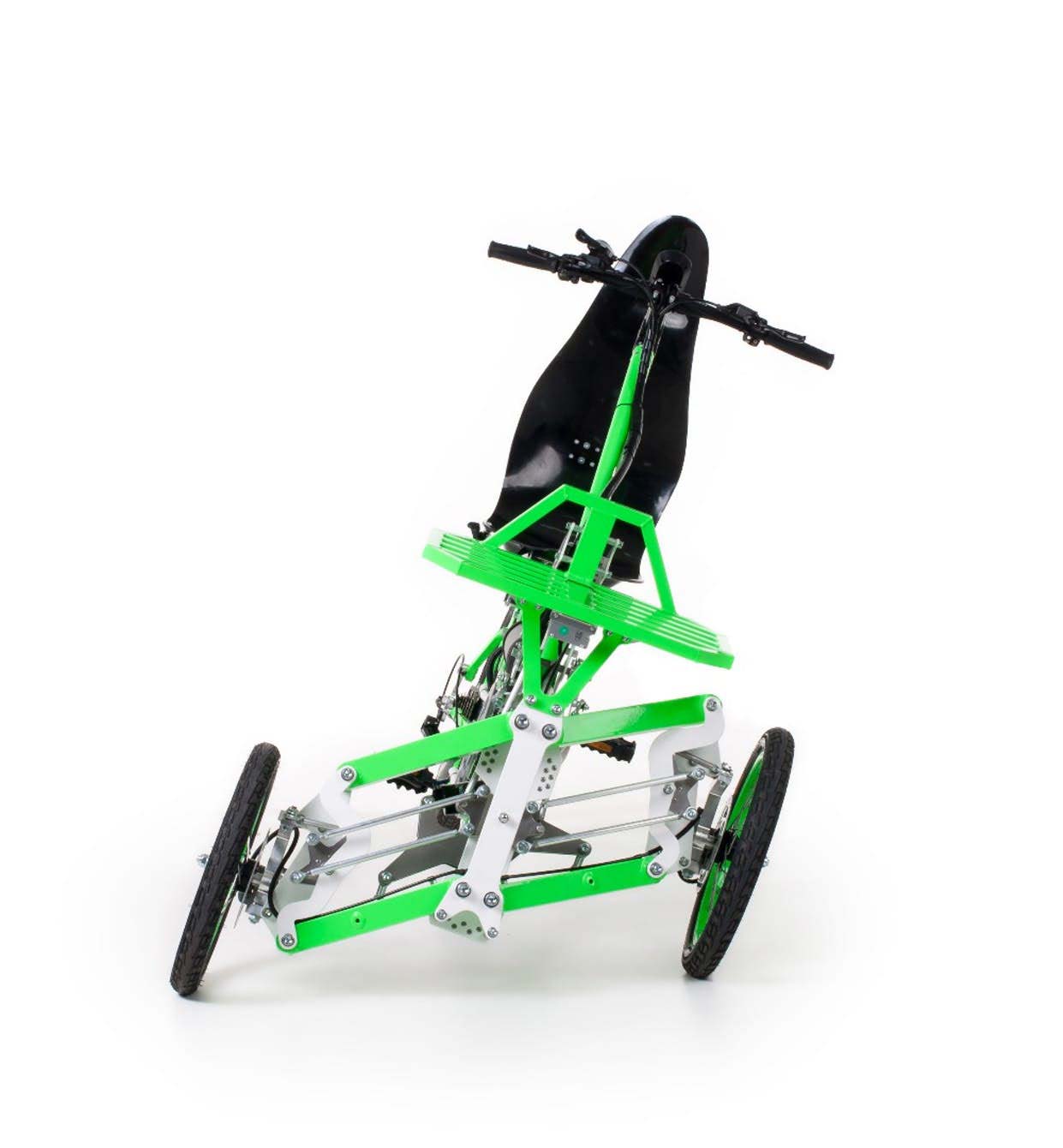Τα πετάλια έχουν τοποθετηθεί εμπρός, φέρνοντας τα πόδια σε θέση παράλληλη με το έδαφος, ενώ με τη διάταξη αυτή ενισχύεται και η δύναμη που εφαρμόζουν στα πετάλια χρησιμοποιώντας την αντίσταση που προσφέρει η πλάτη του «καθίσματος». Το πλαίσιο έχει αρθρώσεις σε διάφορα σημεία, ώστε να προσαρμόζεται στις διαστάσεις του χρήστη, τη θέση του τιμονιού αλλά και το ύψος του καθίσματος. Για την υποβοήθηση της κίνησης διαθέτει ηλεκτροκινητήρα ισχύος 250 W, ενσωματωμένο στην πλήμνη του πίσω τροχού. Η μέγιστη ταχύτητα που προσφέρει φτάνει τα 25 χλμ./ώρα χωρίς να απαιτεί την κίνηση των πεταλιών.