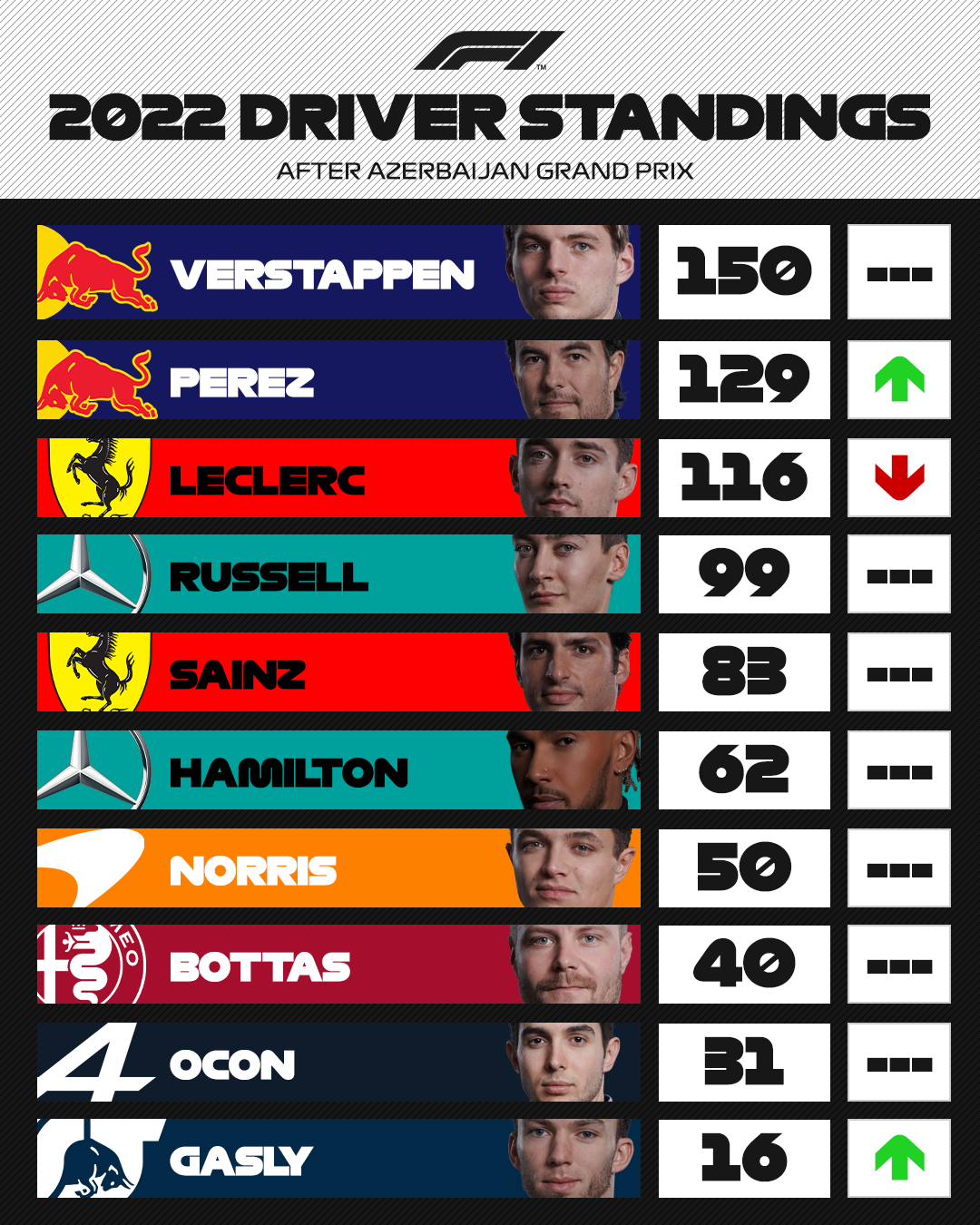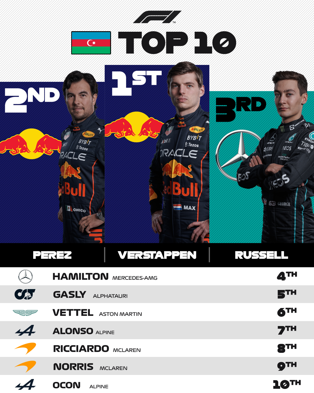 Εκτός βαθμολογίας, πέραν όσων εγκατέλειψαν, βρέθηκαν οι Bottas, Albon, Tsunoda, Schumacher και Latifi, ο οποίος εκτός των άλλων μάζεψε και ποινές 15 δευτερολέπτων για λάθος τοποθέτηση στη σχάρα εκκίνησης και αγνόηση μπλε σημαίας. Μετά τη λήξη του αγώνα ο Max Verstappen δήλωσε χαρούμενος για τη νίκη του και ανέφερε πως οι Red Bull στάθηκαν τυχερές στο Μπακού από τις εγκαταλείψεις των Ferrari, διότι ο Leclerc έδειχνε να έχει βρει ρυθμό νίκης. Στο ίδιο μήκος κύματος και ο Sergio Perez, ο οποίος δήλωσε πως ήταν πολύ σημαντικό αυτό το 1-2 για την ομάδα του και πως είναι και αυτός ενεργός στην κούρσα διεκδίκησης του πρωταθλήματος.
