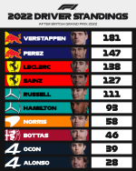 Ας ξεκινήσουμε με τα βασικά. Αν δεν υπήρχε το halo τώρα δε θα υπήρχε ο Zhou. Αυτά για όσους τους ενοχλεί εμφανισιακά το halo ή γενικότερα αγνοούν τα μέσα ασφαλείας σε αυτοκίνητο και μοτοσικλέτα. Όσον αφορά στον απολογισμό του αγωνιστικού συμβάντος, είχαμε τρεις εγκαταλείψεις των Zhou, Russell και Albon, ενώ οι Ocon και Tsunoda οδηγήθηκαν στα pits για αλλαγή των κλαταρισμένων ελαστικών τους. Η πρώτη εκκίνηση, ως μη γενόμενη επί της ουσίας, έδωσε τη θέση της σε μία δεύτερη, ξανά από στάση και με τις ίδιες ακριβώς θέσεις που είχαν οι πιλότοι από τις κατατακτήριες δοκιμές. Αυτή τη φορά ο Sainz κράτησε την πρώτη θέση, με τον Verstappen πίσω του. Οι Leclerc και Perez είχαν επαφή που ανάγκασε το Μεξικανό να οδηγηθεί στα pits και να βγει τελευταίος στην πίστα, έχοντας μπροστά του 16 μονοθέσια για να προσπεράσει.