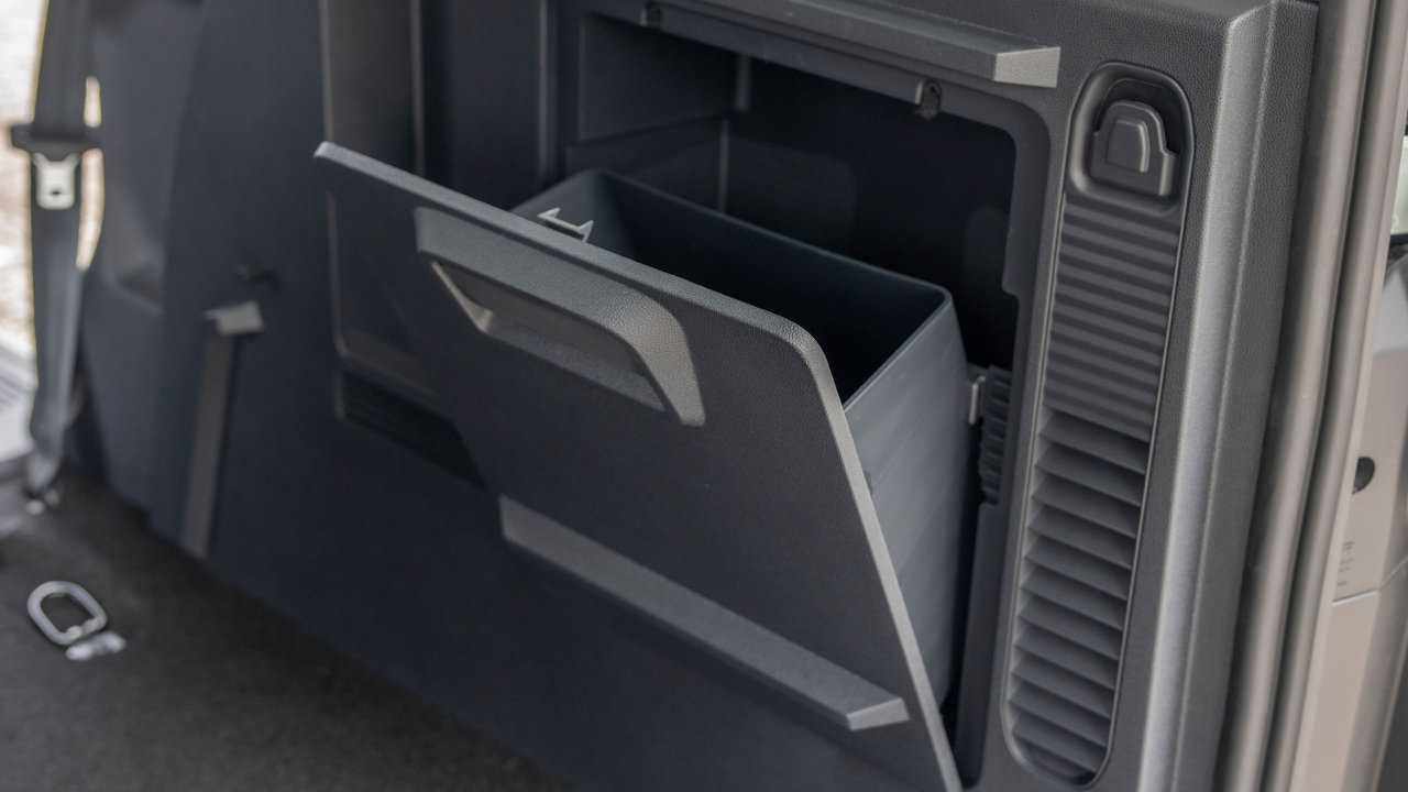 Στο εσωτερικό υπάρχει επίσης ένα κρυφό ντουλαπάκι στον χώρο αποσκευών. Εκεί μπορούν να φυλαχτούν ξεχωριστά βρεγμένα, βρώμικα ή πολύτιμα αντικείμενα. Ένας δεύτερος αποθηκευτικός χώρος κάτω από το καπό (frunk) μπορεί να φιλοξενήσει το καλώδιο φόρτισης, ένα σακίδιο ή τσάντες με ψώνια. Για ακόμα μεγαλύτερες μεταφορικές απαιτήσεις, η αναδίπλωση των πίσω καθισμάτων δίνει τη δυνατότητα για φόρτωση αντικειμένων μήκους άνω των 1,4 m – ιδανικό για έπιπλα, τσάντες γκολφ, ποδήλατα ή υλικά για κατασκευές “Do It Yourself”.