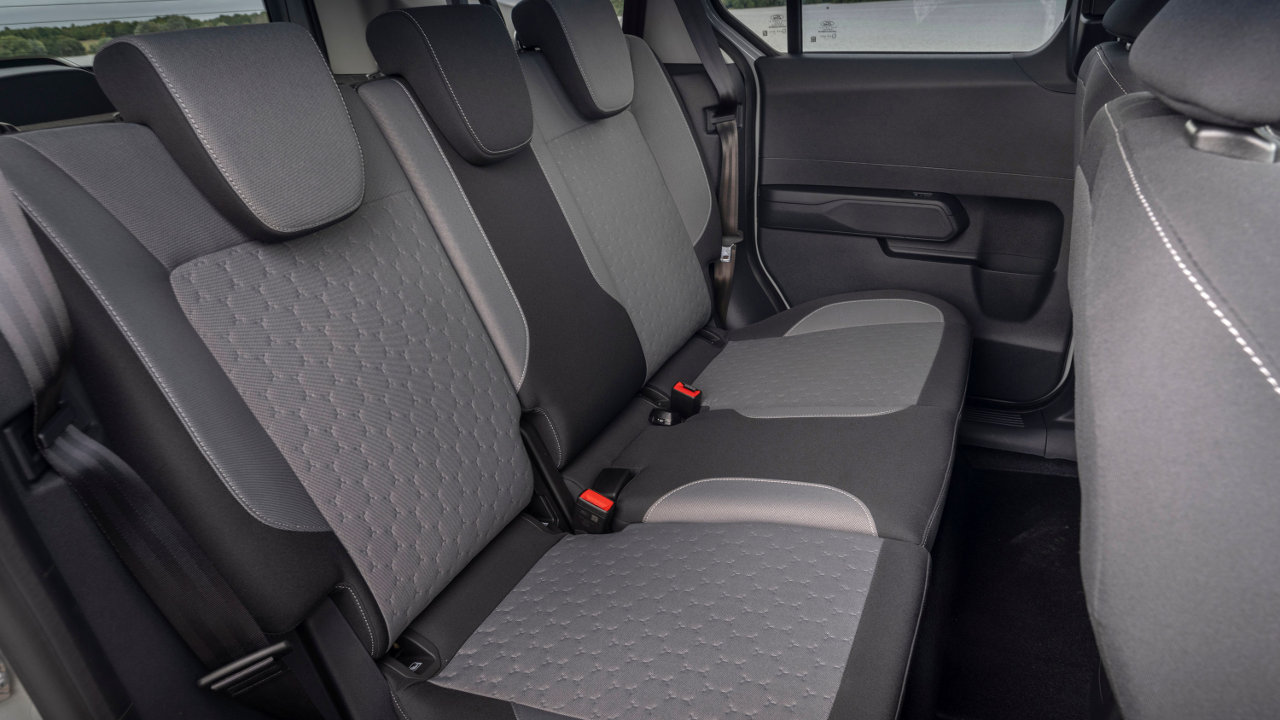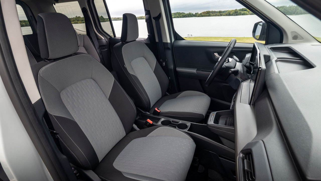 Τα καθίσματα του E‑Tourneo Courier είναι υπερυψωμένα σε σχέση με αυτά ενός συνηθισμένου αυτοκινήτου, προσφέροντας εξαιρετική ορατότητα. Η ψηλή οροφή, σε συνδυασμό με τα μεγάλα παράθυρα, εξασφαλίζουν άφθονο χώρο για το κεφάλι και φυσικό φως.