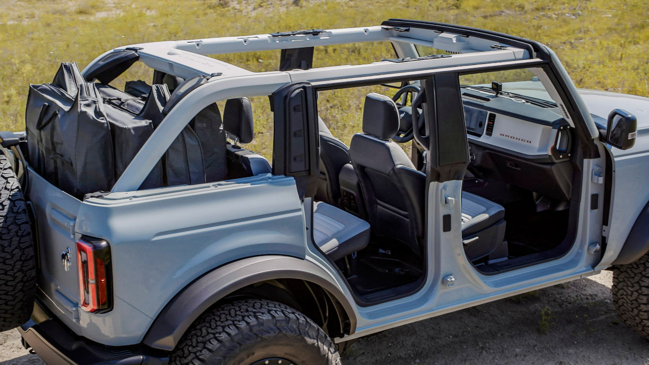 Το δίθυρο και το 4θυρο Bronco φέρουν οροφές που αφαιρούνται και φέρνουν τους επιβαίνοντες σαφώς πιο κοντά στη φύση. Οι οροφές τους αφαιρούνται τμηματικά, ανάλογα και με τις προτιμήσεις των επιβαινόντων με το κομμάτι πάνω από τον οδηγό να αφαιρείται ανεξάρτητα από εκείνο του συνοδηγού. Ανάλογα με το επίπεδο εξοπλισμού, αφαιρούμενες είναι και οι πόρτες για την απόλυτη επαφή με το περιβάλλον και αυτό δίνει παράλληλα στο Bronco μια σαφώς πιο άγρια όψη.