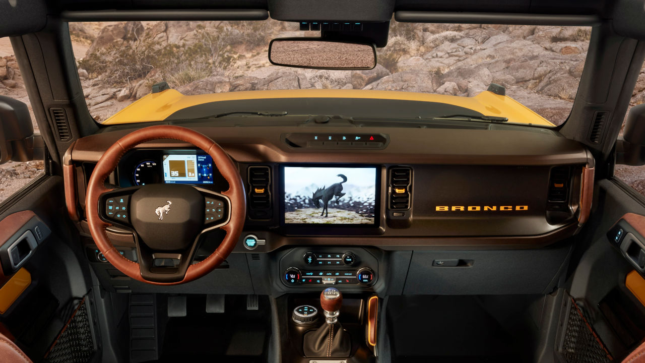 Η νέα γενιά του Bronco δανείζεται πολλά σχεδιαστικά στοιχεία από την πρώτη της 10ετίας του ’60 και αυτό ισχύει τόσο για το εξωτερικό όσο και για το εσωτερικό του μοντέλου με τις υψηλές προδιαγραφές για κίνηση εκτός δρόμου. Για πρώτη φορά στη μακρόχρονη ιστορία του και έπειτα από ένα διάλειμμα σχεδόν δυόμιση δεκαετιών, το Bronco θα είναι διαθέσιμο και σε 4θυρη έκδοση με την γκάμα να συμπληρώνεται από το Bronco Sport, ένα ελαφρώς μικρότερο σε διαστάσεις SUV με το βλέμμα στην άσφαλτο και τα αυξημένα επίπεδα άνεσης σε αυτό το τερέν.