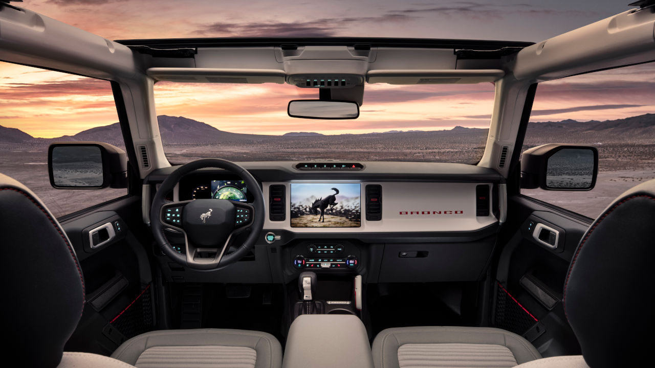 Η Ford θέλει να συνεχίσει την εκτός δρόμου σκληροτράχηλη παράδοση των προηγούμενων Bronco και στη νέα γενιά του μοντέλου της και γι αυτό το λόγο το εξοπλίζει με όλα τα “απαραίτητα” για να μπορεί να κινείται σε κάθε έδαφος με άνεση. Αυτός είναι και ο λόγος άλλωστε που στον προαιρετικό εξοπλισμό του μπορεί να βρει κανείς περί τα 200 έξτρα στοιχεία, αρκετά από αυτά για να το κάνουν ακόμη πιο “μάχιμο”, μεταξύ των οποίων και τη μαλακή οροφή. Άλλωστε η Ford αναφέρει πως έχει κάνει το Bronco τόσο γερό όσο είναι και η διάσημη σειρά F των pick up της. Χρησιμοποιεί άλλωστε πλαίσιο τύπου σκάλας. Και τα υλικά στη καμπίνα του off roader της έχουν επιλεχθεί με στόχο την αντοχή (τα πατώματα μπορούν να πλυθούν με νερό, τα κουμπιά της κεντρικής κονσόλας φέρουν αδιαβροχοποίηση), ενώ βλέπουμε και πρακτικές επιλογές που κάνουν πιο εύκολη τη ζωή, όπως είναι η μπάρα στο ταμπλό που επιτρέπει την τοποθέτηση βάσεων για έξυπνα κινητά αλλά και κάμερες δράσης.