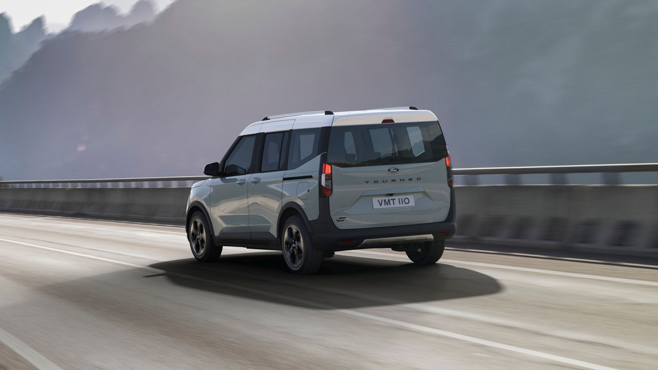 Εξωτερικά, τόσο το Ford E-Tourneo Courier, όσο και το βενζινοκίνητο “αδερφάκι” του με τον EcoBoost κινητήρα, φέρουν μοντέρνα Led σώματα εμπρός και συρόμενες πόρτες στο πλάι. Στη περίπτωση του ηλεκτρικού μοντέλου εισάγονται νέες διακριτικές επιλογές χρωμάτων, όπως το Cactus Grey, καθώς και τα μεταλλικά Fantastic Red και Bursting Green. Οι εκδόσεις Active μπορούν να παραγγέλνονται αποκλειστικά με χρωματική αντίθεση οροφής και διαθέτουν μοναδικές ζάντες αλουμινίου 17 ιντσών, μπάρες οροφής και εξωτερικά προστατευτικά στα τόξα των θόλων των τροχών.