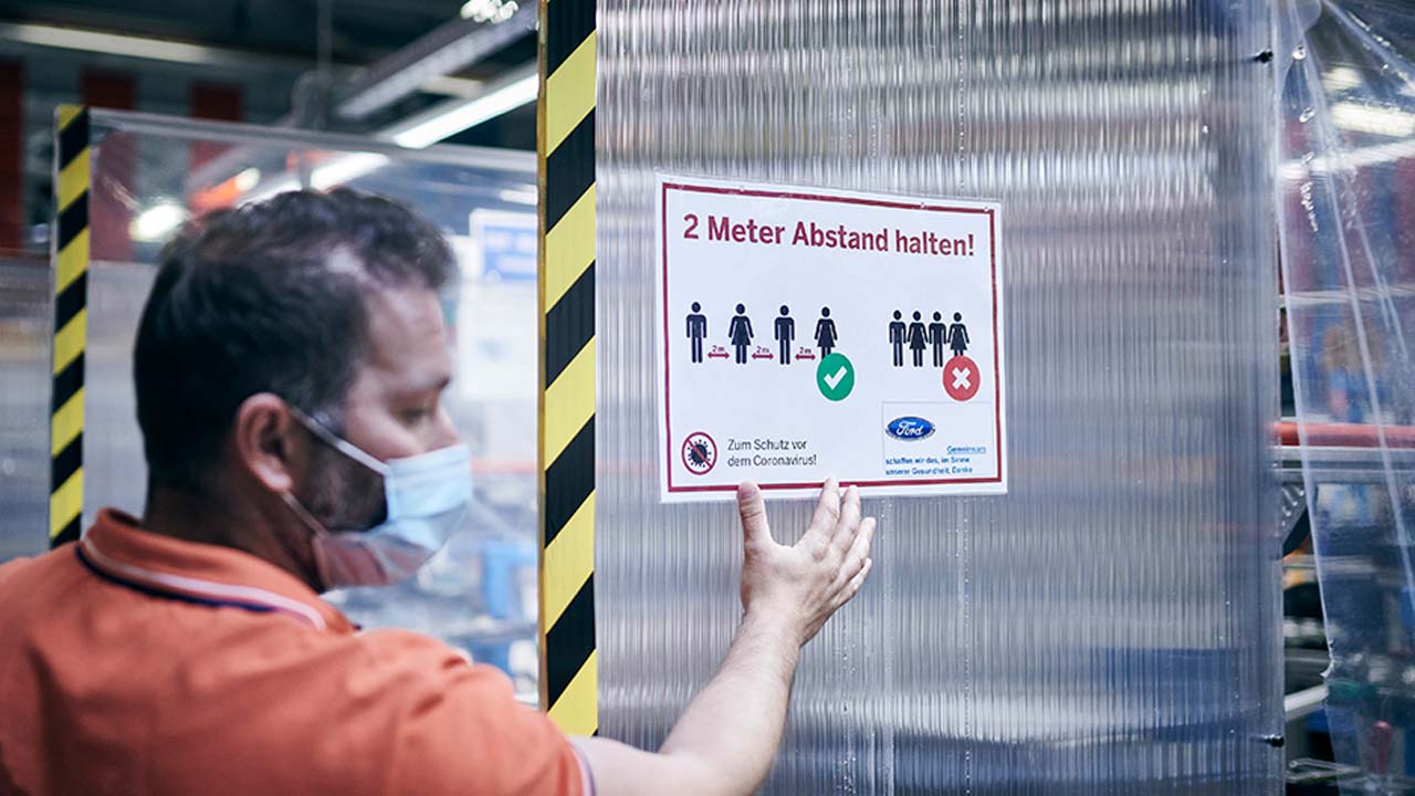 Θα εφαρμοστεί μία ολοκληρωμένη λίστα παγκόσμιων προτύπων της Ford για την κοινωνική αποστασιοποίηση και πρωτόκολλα υγείας και ασφάλειας των εργαζομένων στα εργοστάσια και τις λοιπές εγκαταστάσεις της Ford σε όλη την Ευρώπη. Μεταξύ άλλων, θα περιλαμβάνει τα εξής: