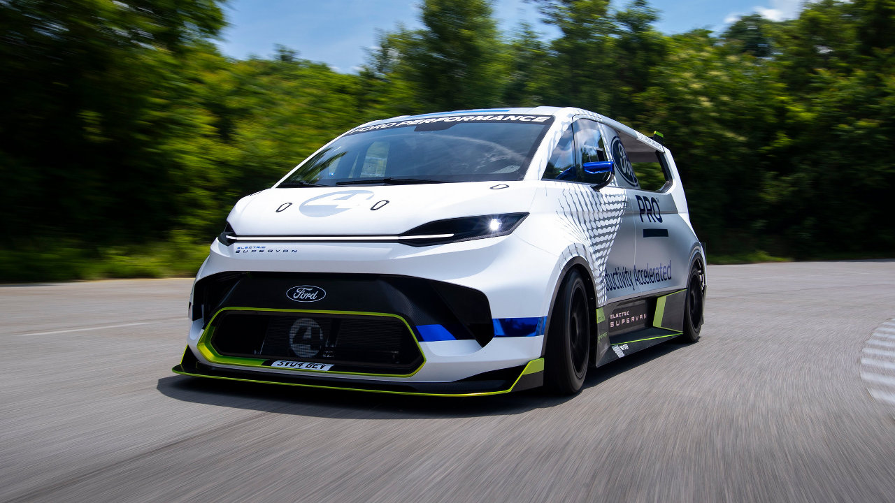 Με το αμιγώς ηλεκτρικό Pro Electric SuperVan, η Ford εγκαινίασε στο Φεστιβάλ Ταχύτητας του Goodwood, το πρώτο ηλεκτροκίνητο “κεφάλαιο” στη θρυλική σειρά Supervan, των διάσημων οχημάτων επίδειξης που εμπνέονται από το Ford Transit,στην προκειμένη περίπτωση από το νέο E-Transit Custom.