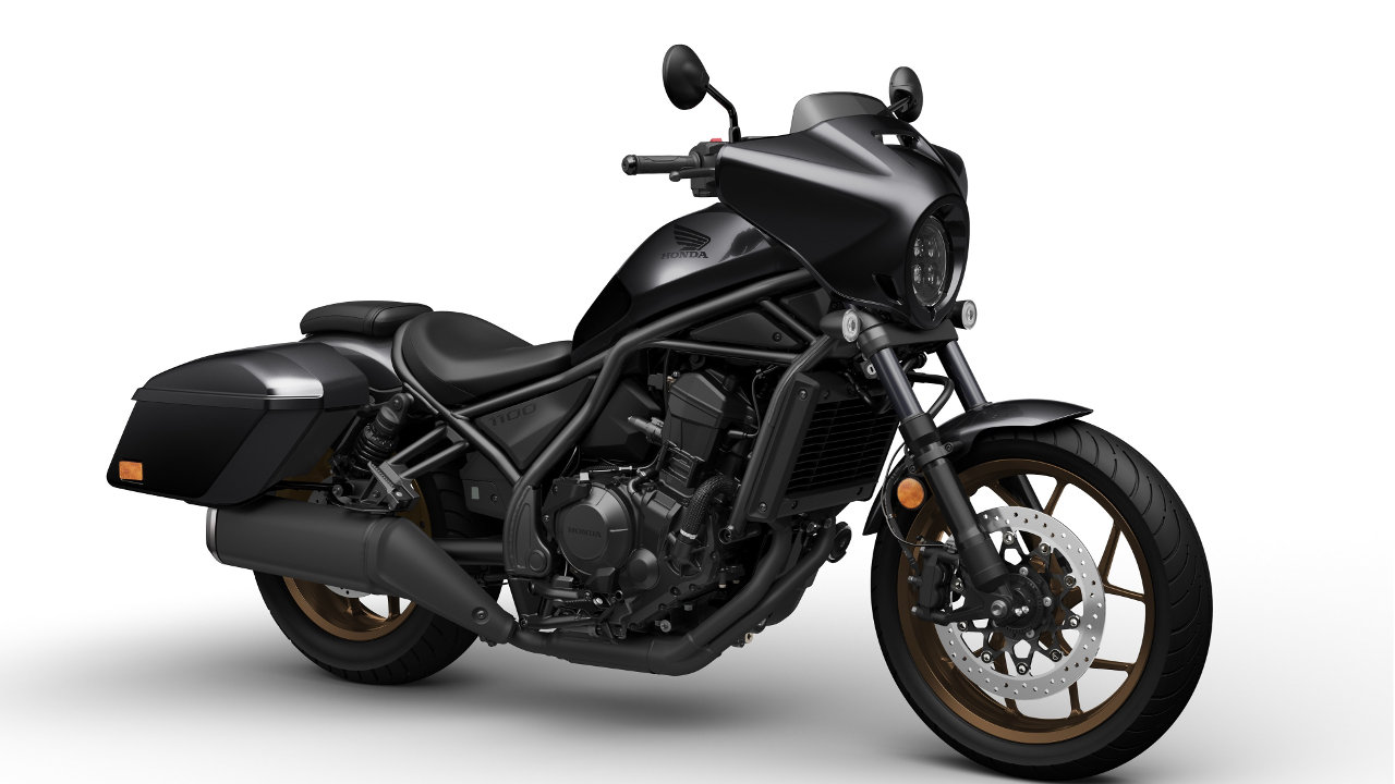 Η CMX1100T, η οποία παρουσιάστηκε πέρυσι και φέρει ένα μεγάλο μισό φέρινγκ και σκληρές βαλίτσες, ανανεώνεται εξωτερικά με το χρώμα Gunmetal Black Metallic και τους bronze τροχούς.
