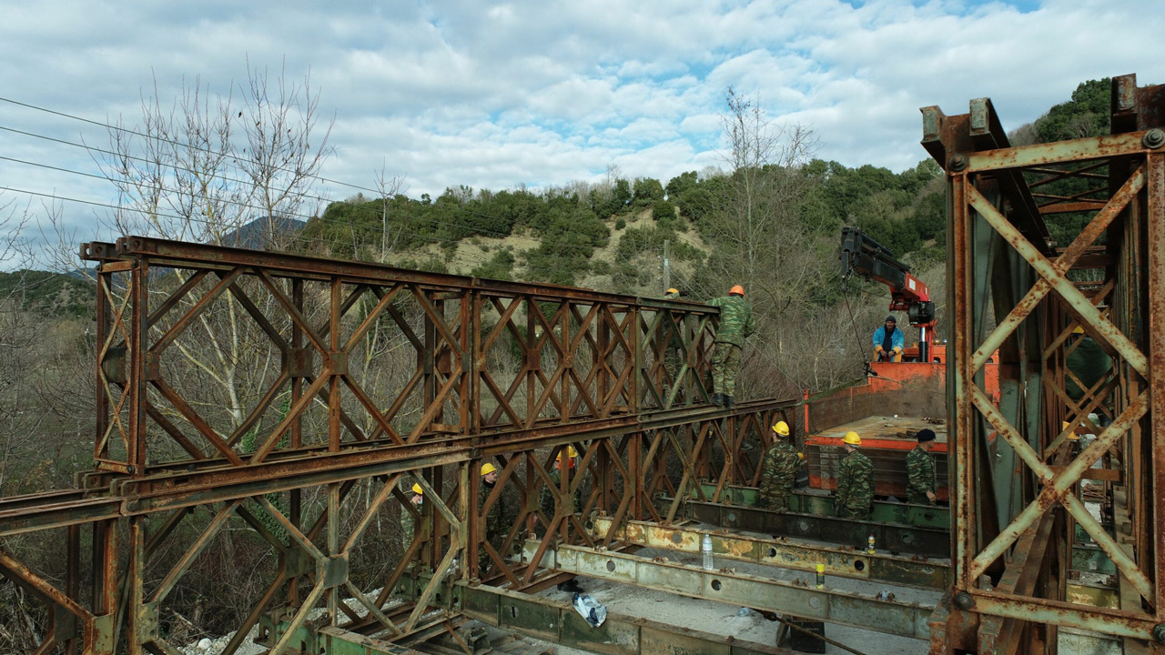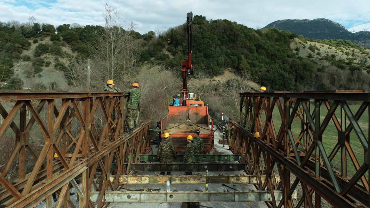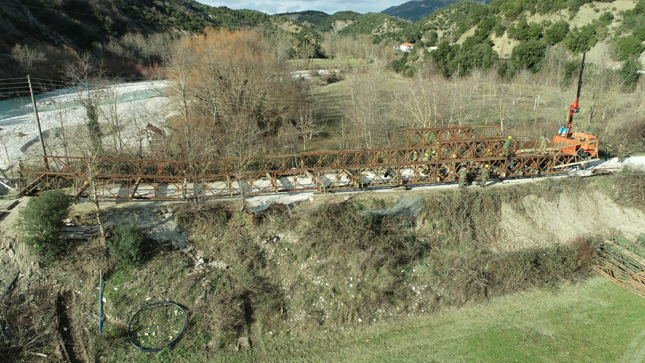 Στο πλαίσιο αντιμετώπισης φυσικών καταστροφών, ο Ελληνικός Στρατός σε συνεργασία με την Περιφέρεια Ηπείρου εκτέλεσε εργασίες τοποθέτησης μεταλλικής γέφυρας τύπου BAILEY στον ποταμό Άραχθο.