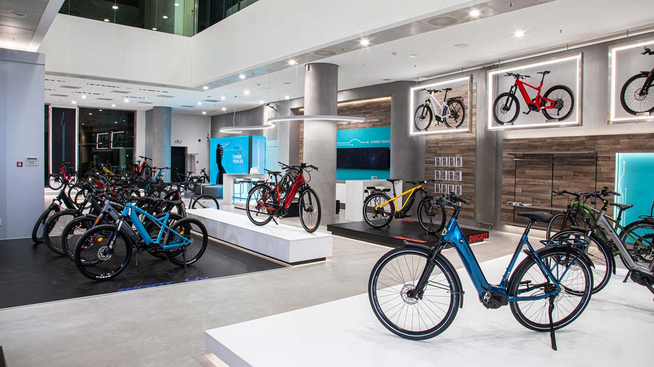 Εδώ κάποιος θα βρει ηλεκτρικά ποδήλατα της ελβετικής STROMER, τα γερμανικά RIESE & MÜLLER, τα MOUSTACHE από τη Γαλλία, τα νέα ηλεκτρικά μοντέλα της θρυλικής DUCATI, τα τελευταία μοντέλα e-Bikes του παγκόσμιου ποδηλατικού κολοσσού GIANT και τα σπαστά ηλεκτρικά ποδήλατα της ολλανδικής LACROS.